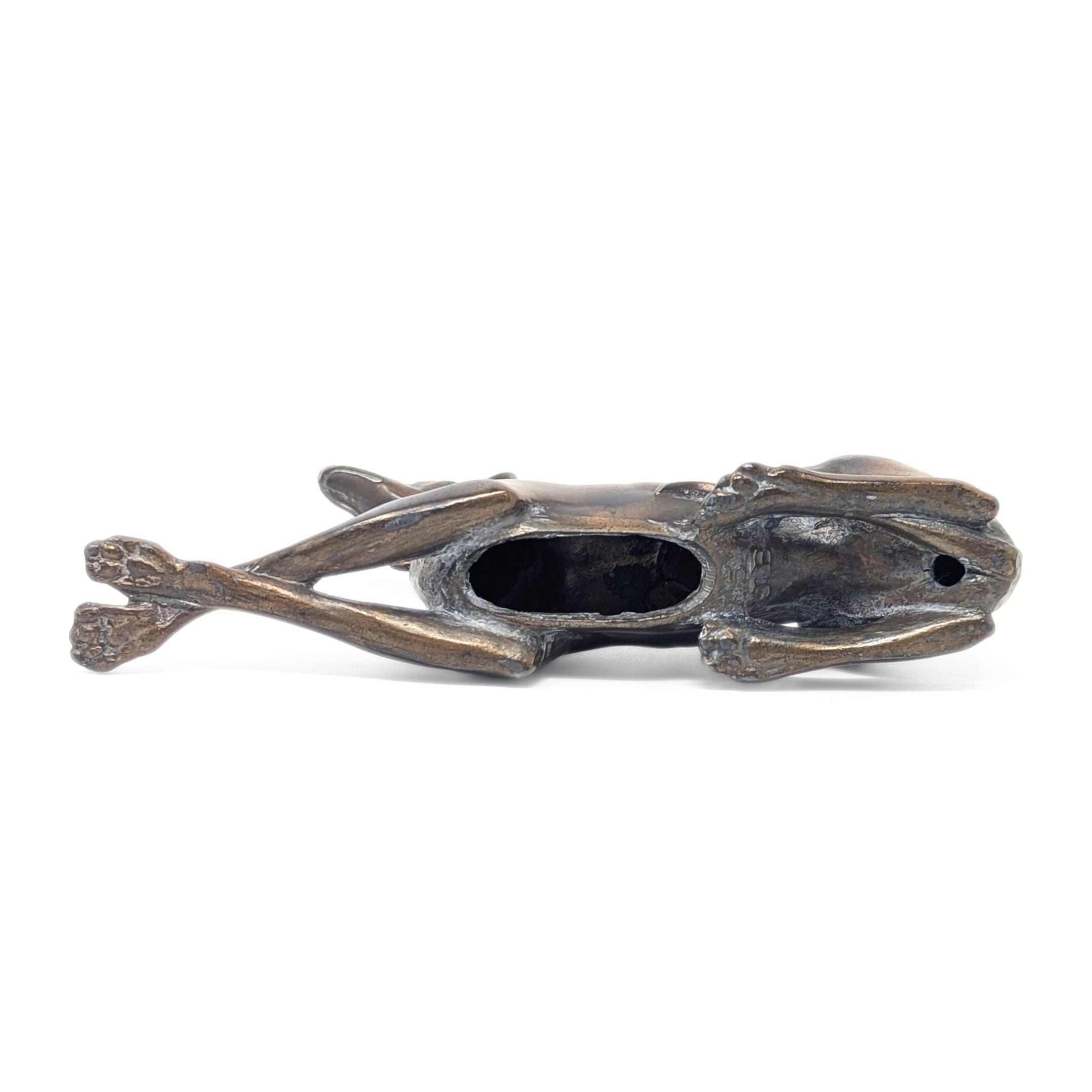 Details: Graceful greyhound or whippet figurine in a relaxed, recumbent pose capturing the sleek and muscular lines of the breed.