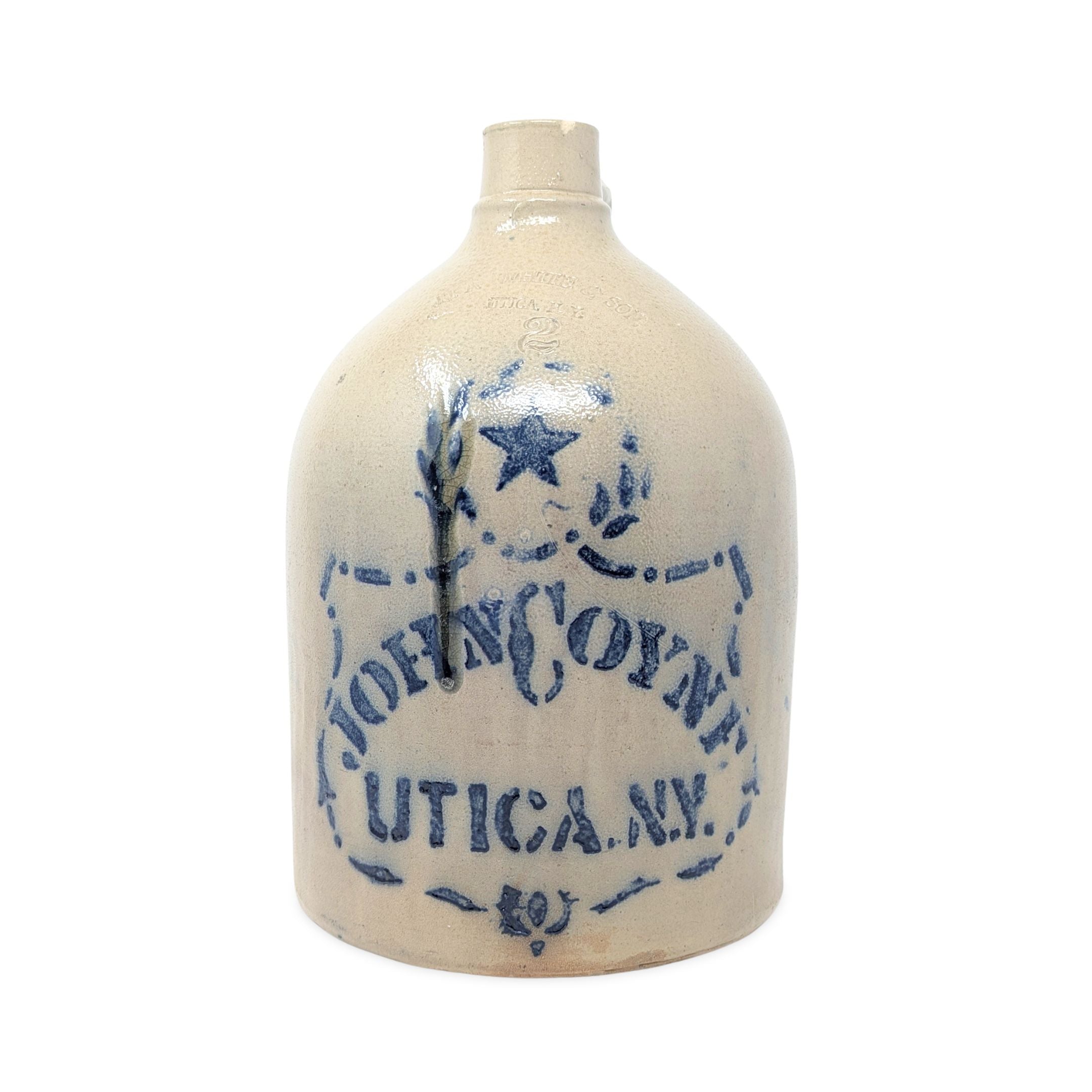 N.A.White Antique 2gal Jug, John Coyne Utica NY