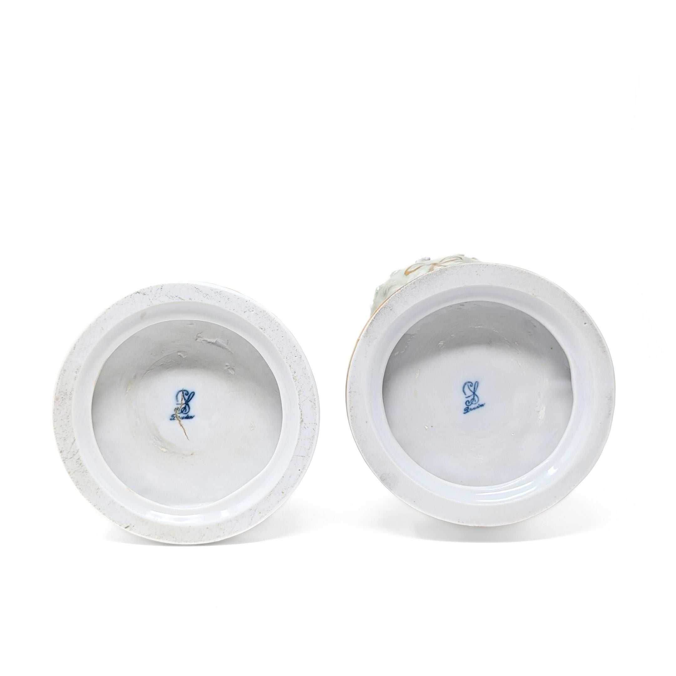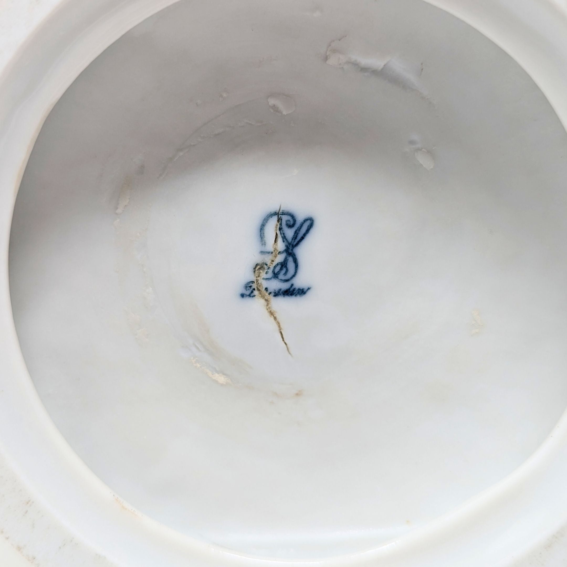 Details: In 1872, decorator Carl Thieme founded the Saxon Porcelain Manufactory in Potschappel, a Dresden suburb. This was one of the few Dresden-based companies to manufacture its own porcelain, in addition to decorating blanks from other producers. Both are marked with the blue Dresden stamp on the bottom.