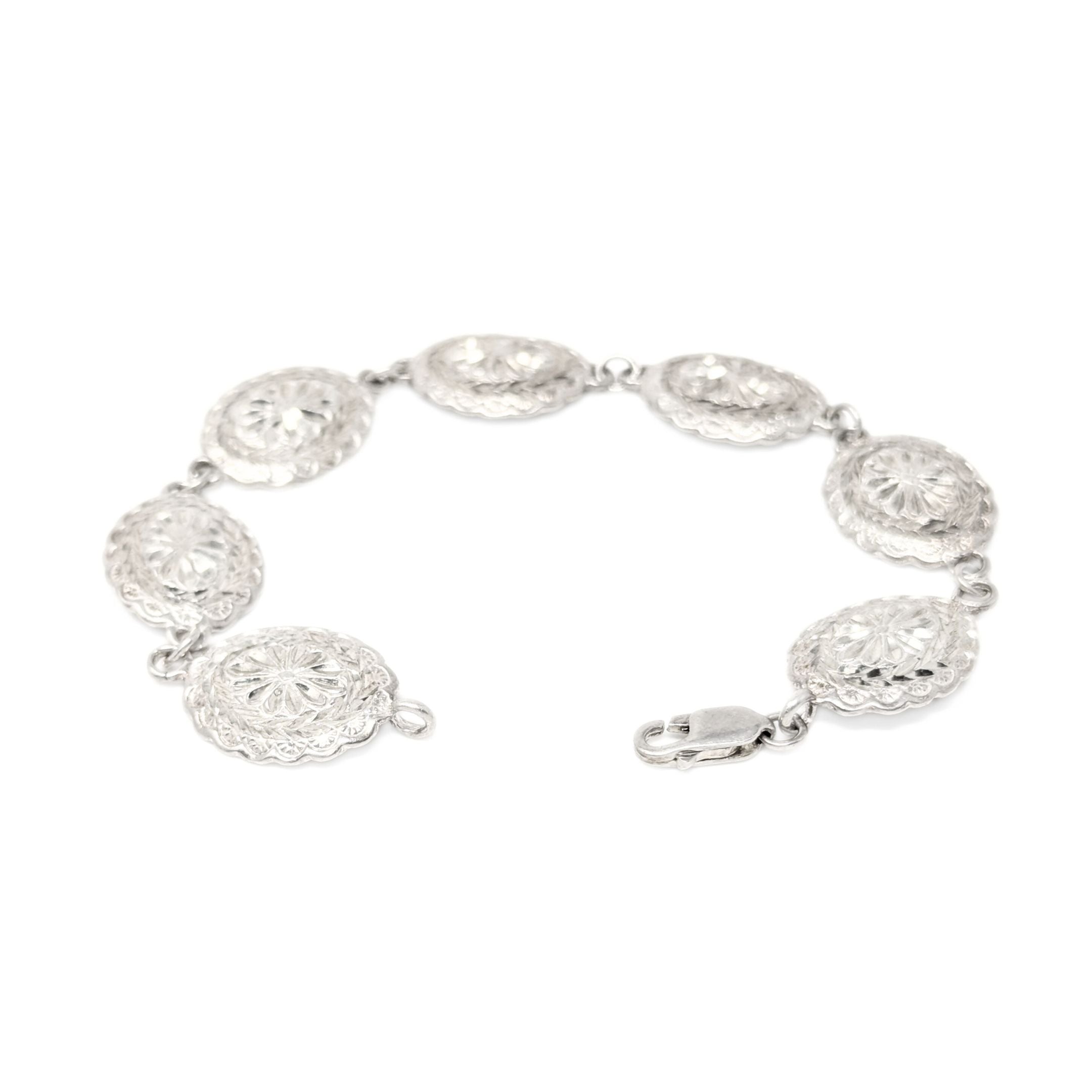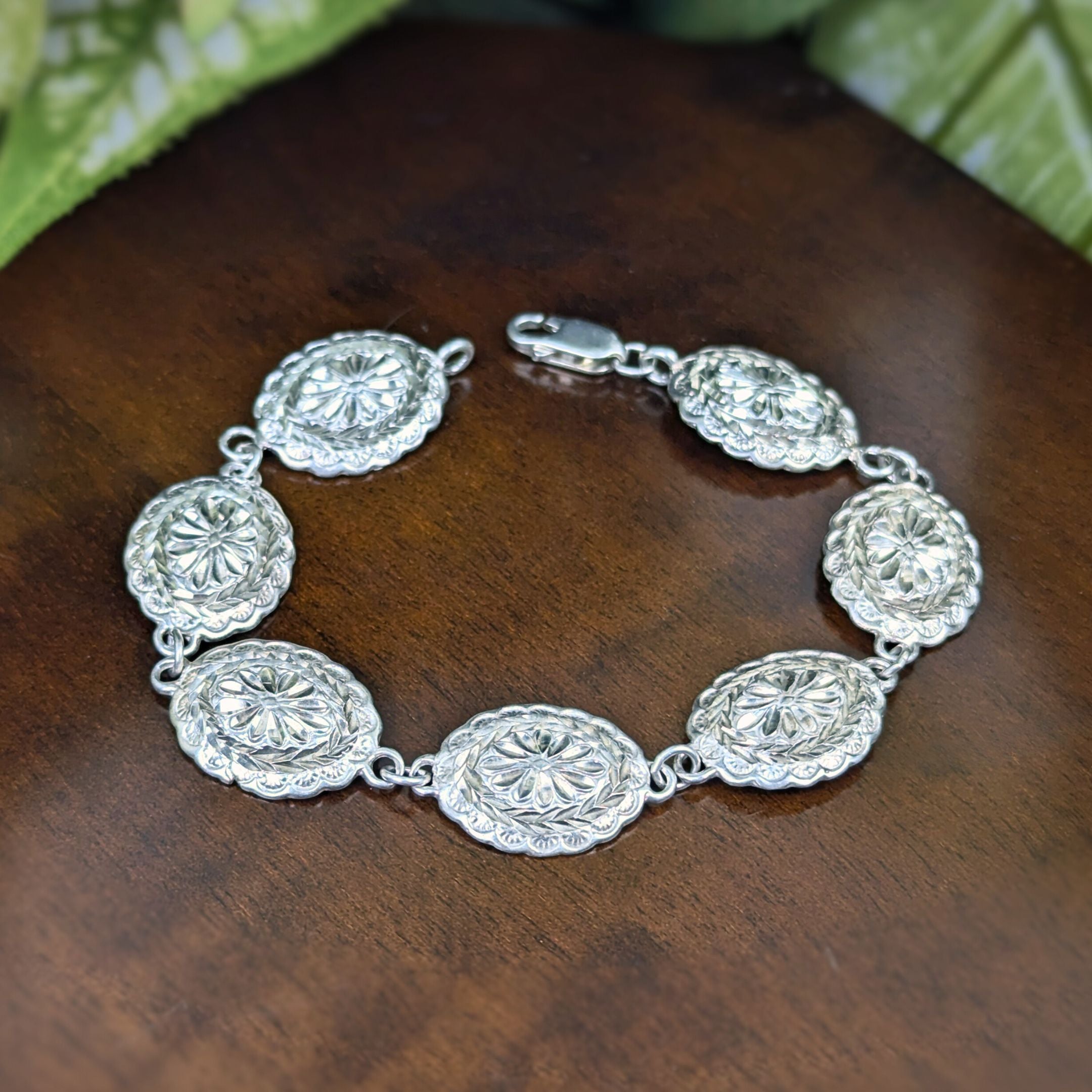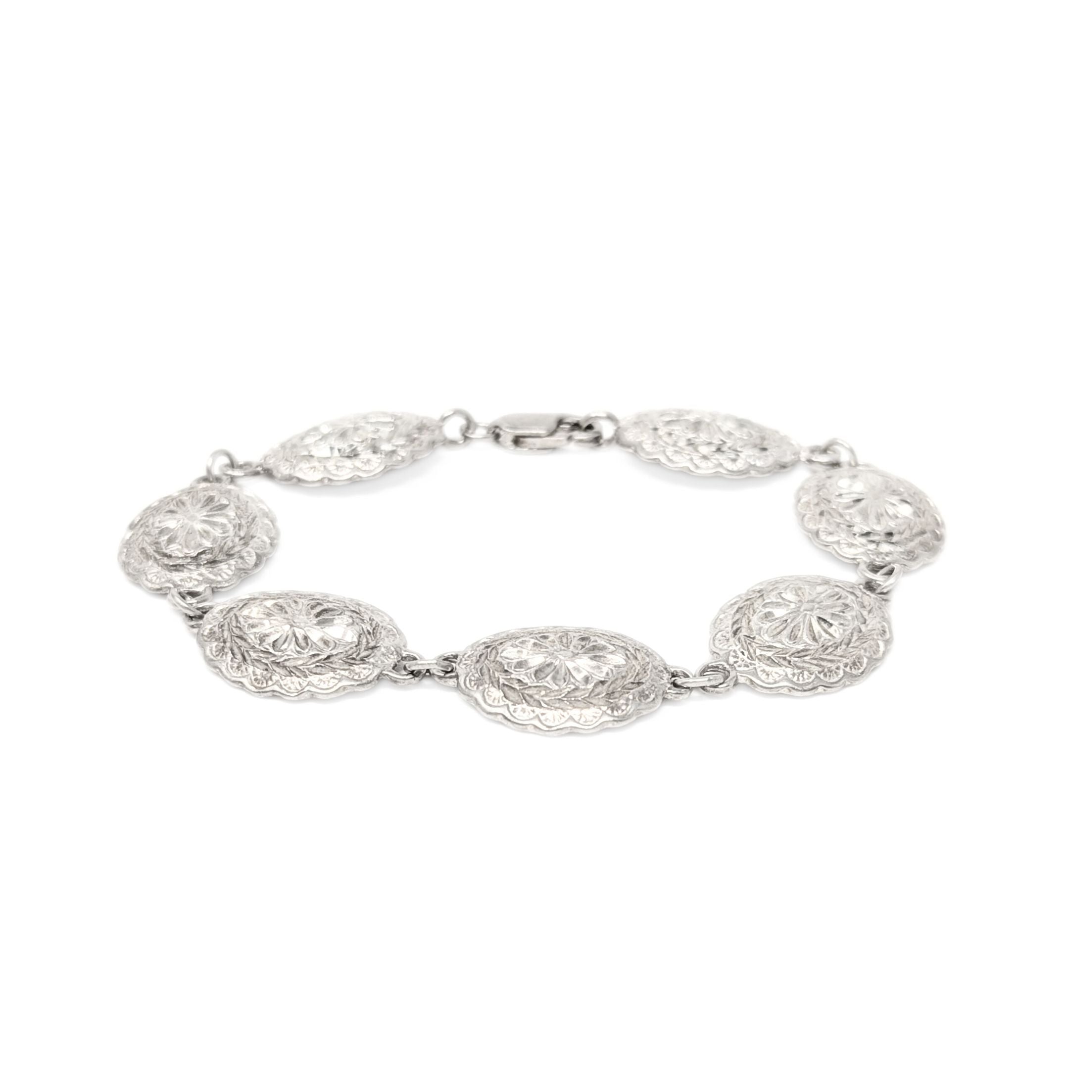 Vintage Sterling Silver Diamond Cut Oval Concha Bracelet