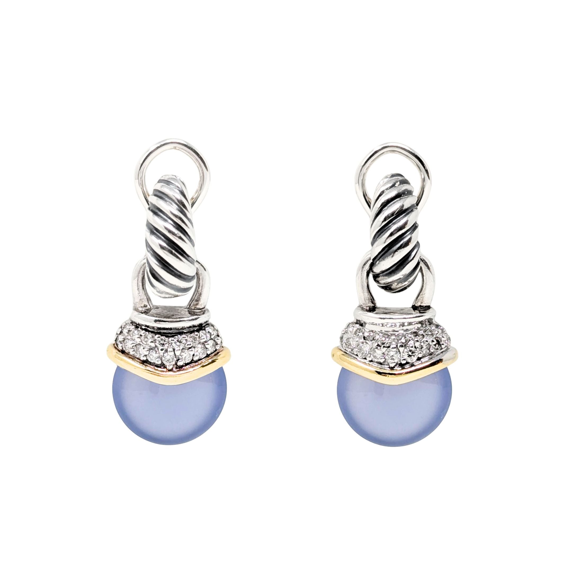 David Yurman 18K/.925 Albion Chalcedony Diamond Acorn Drop Earrings