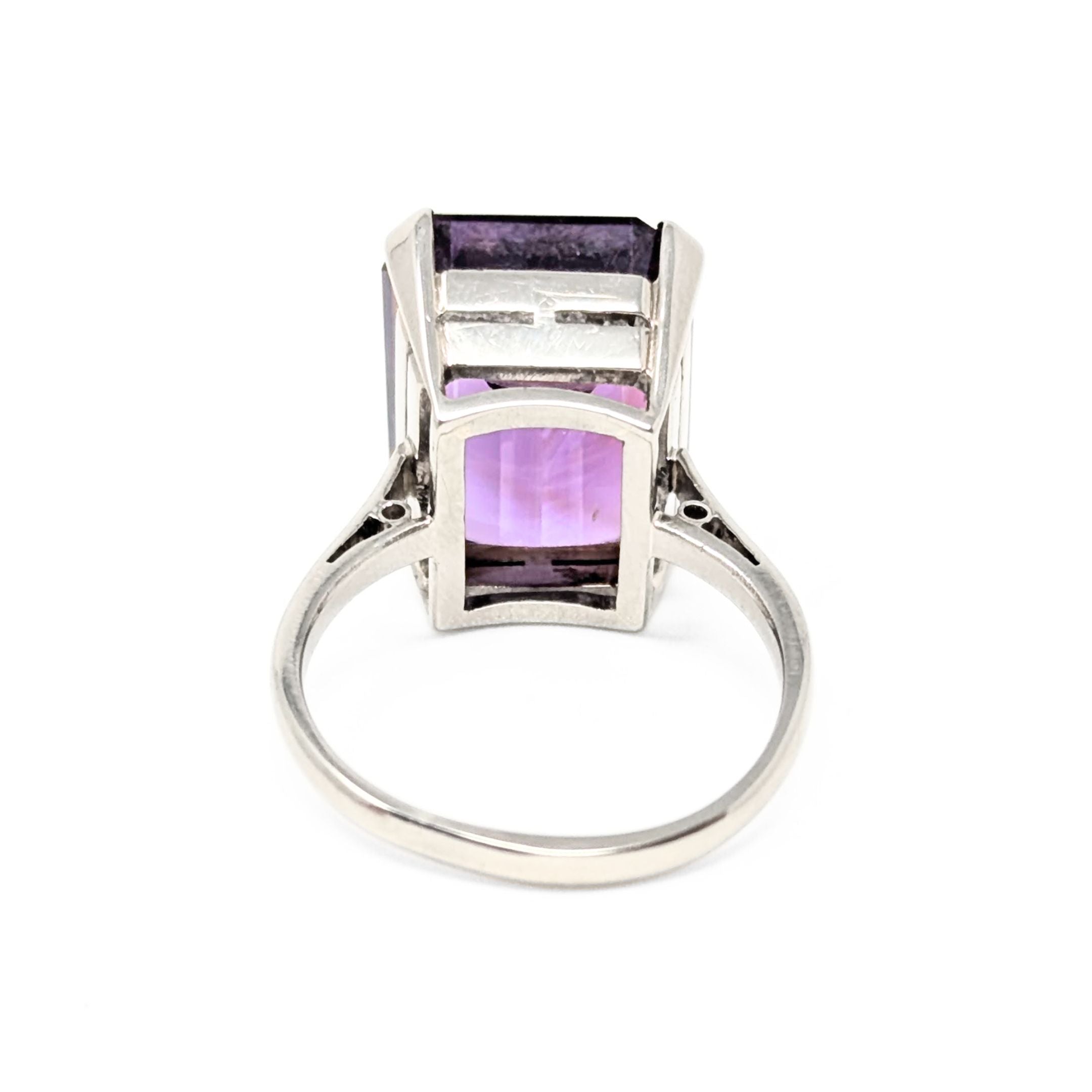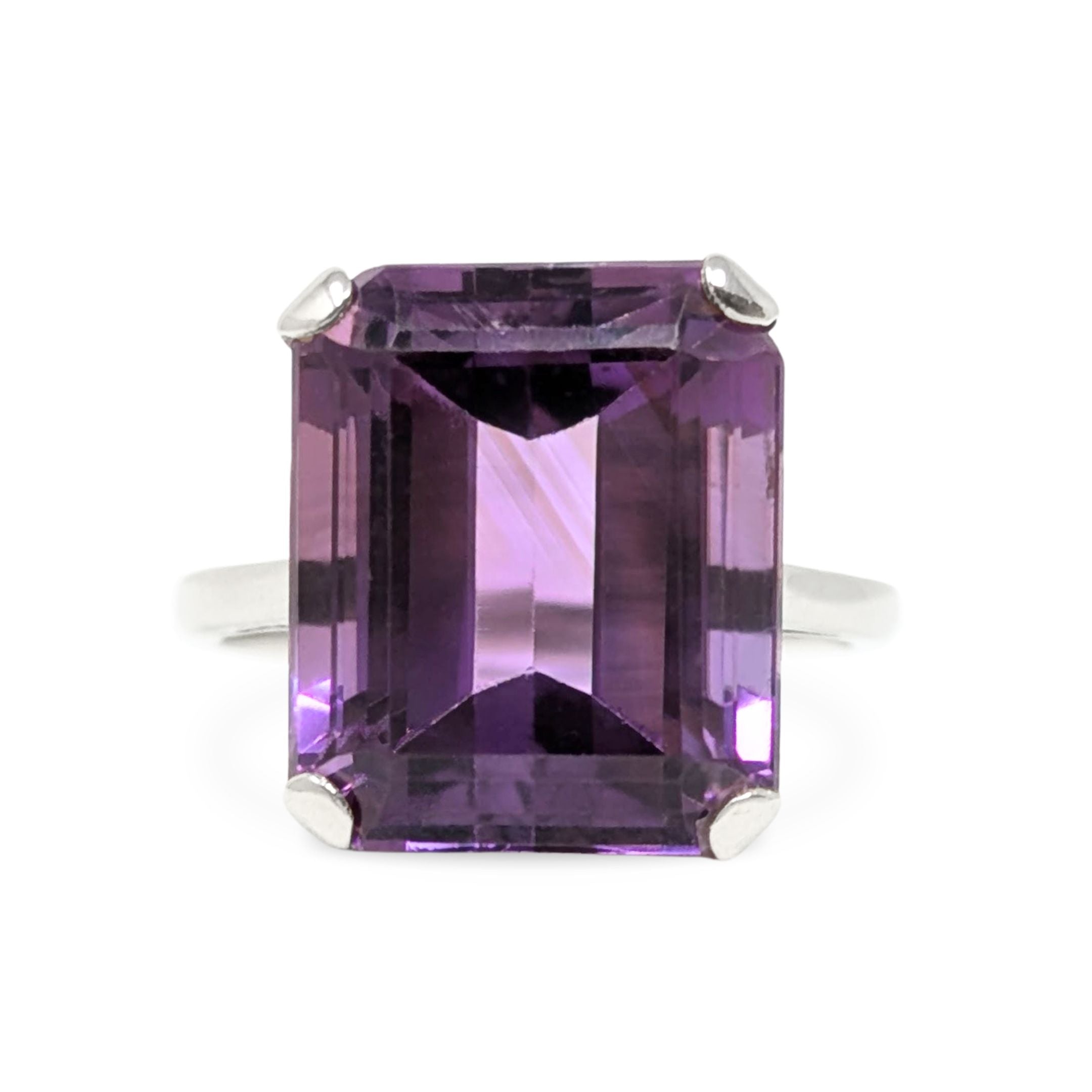 Details: A very large, beautiful, emerald cut amethyst mounted in 9K white gold.
