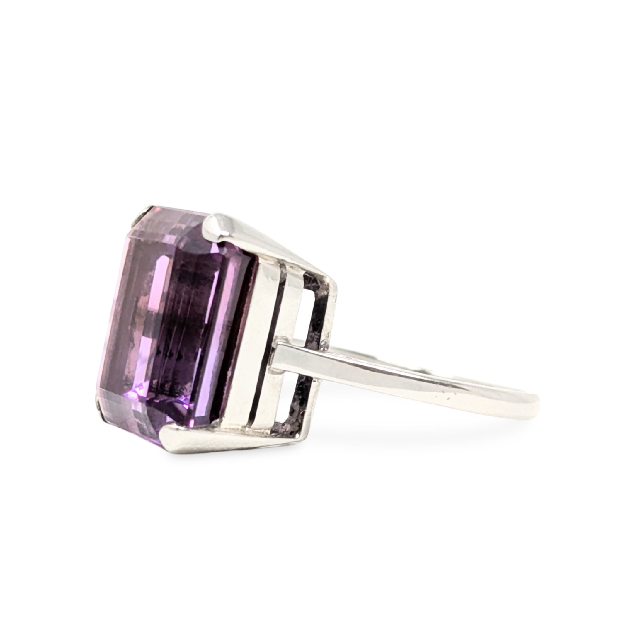 9K White Gold Emerald Cut Amethyst Solitaire Ring - Size 7.5