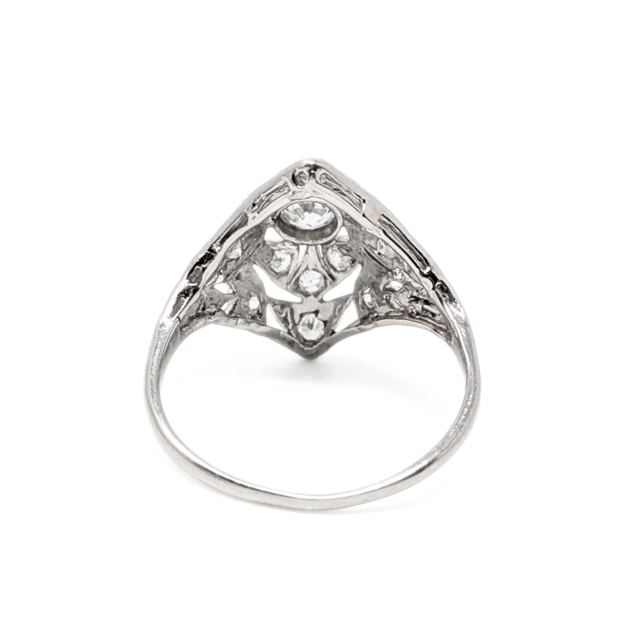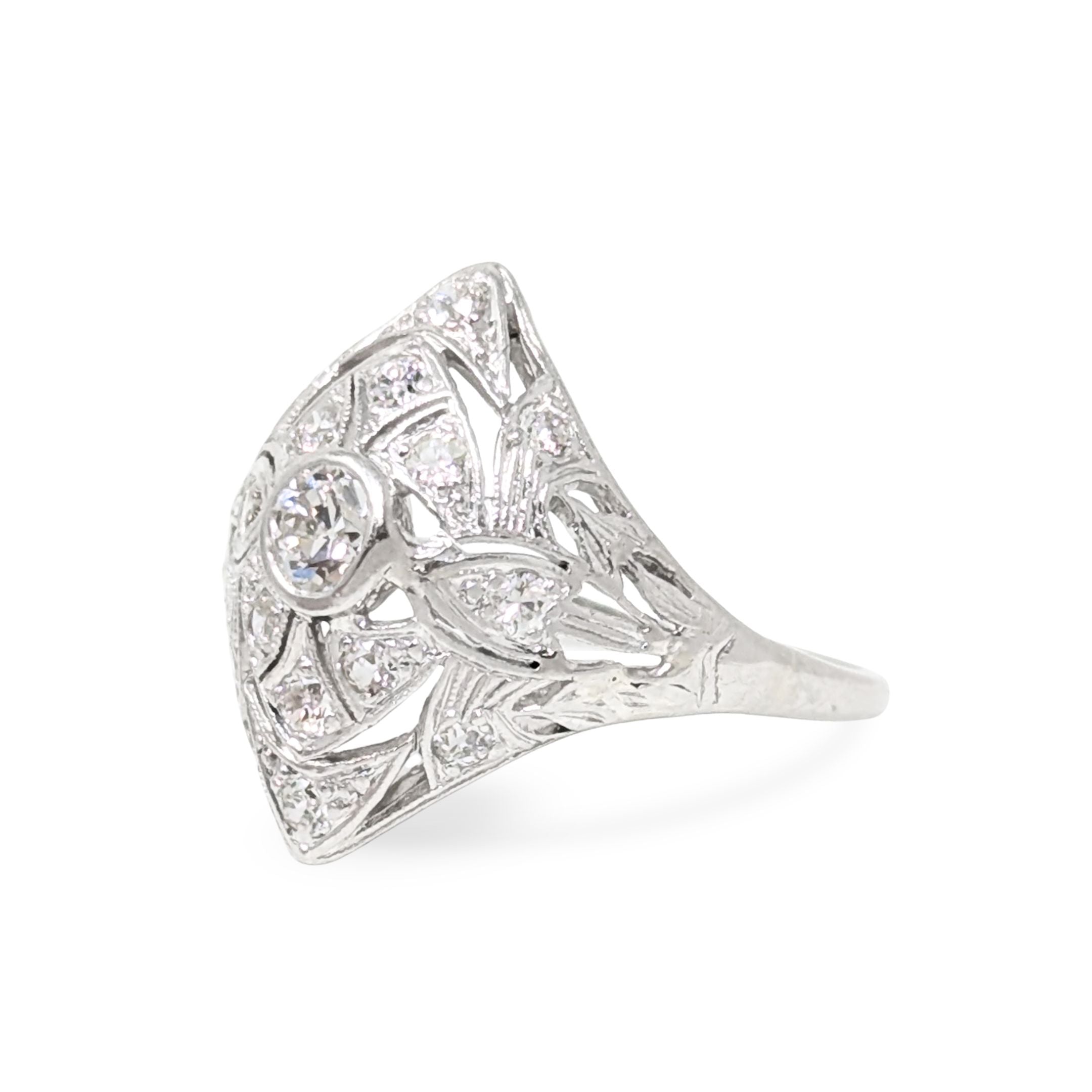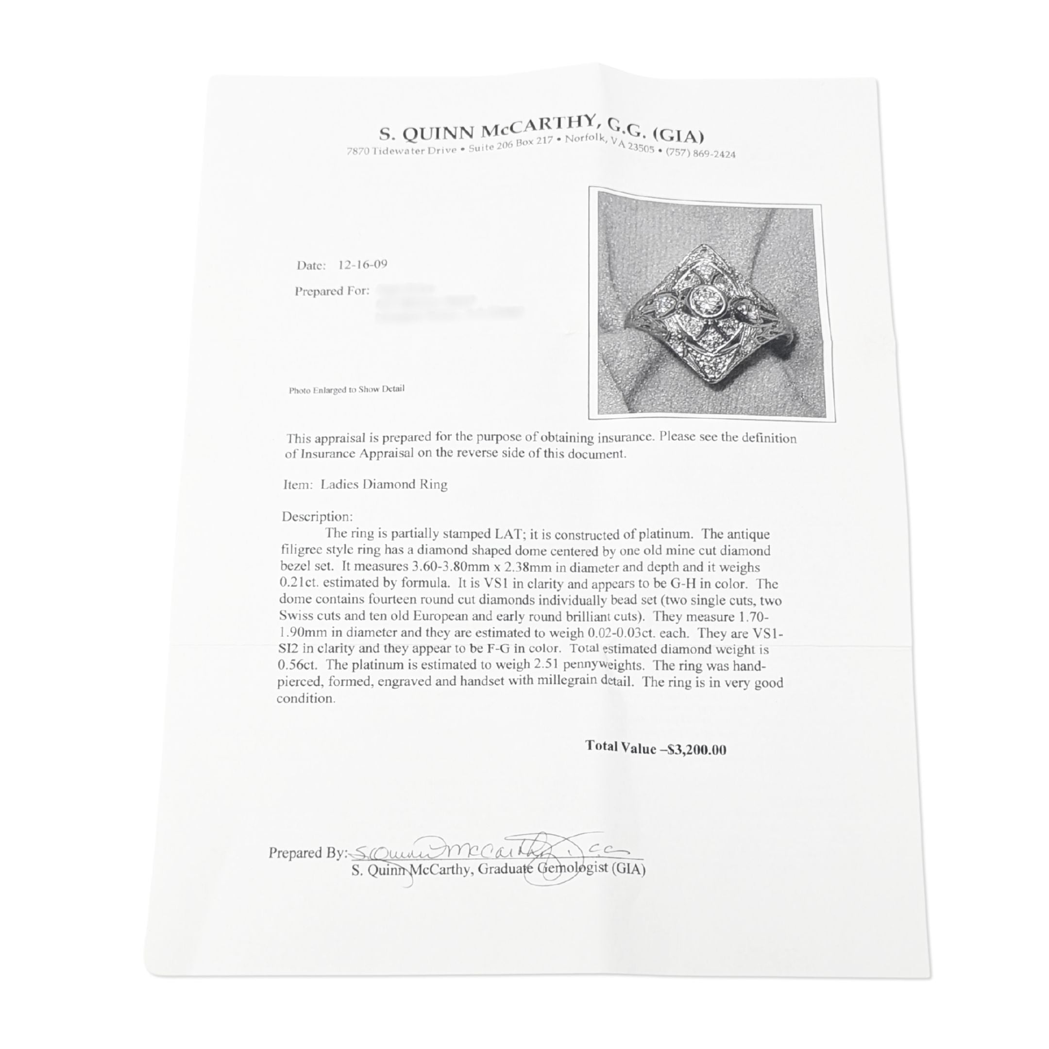 Antique Platinum & Diamond Filigree Ring - Size 7 W/ Papers