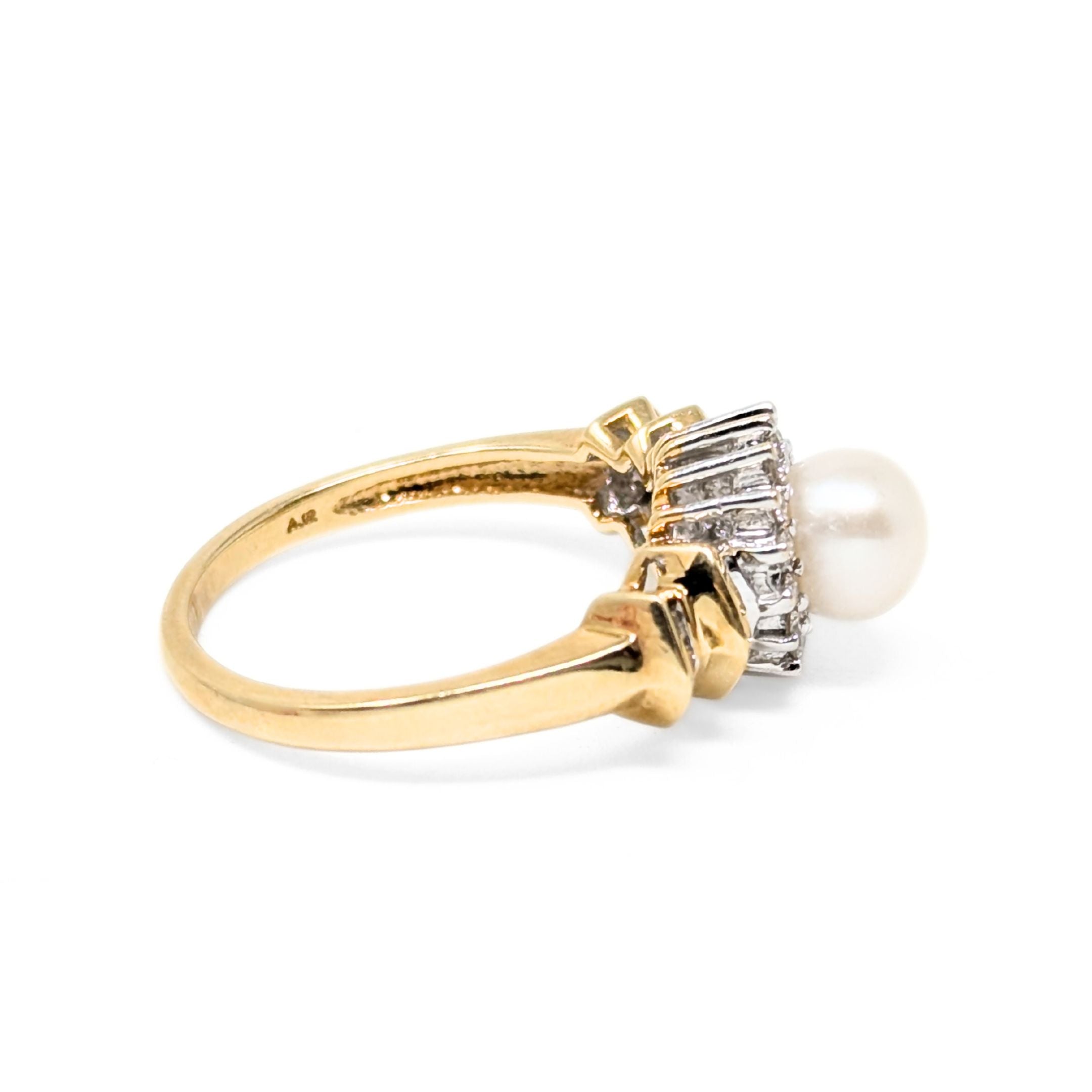 10K Gold Pearl & Diamond Halo Ring - Size 7.25