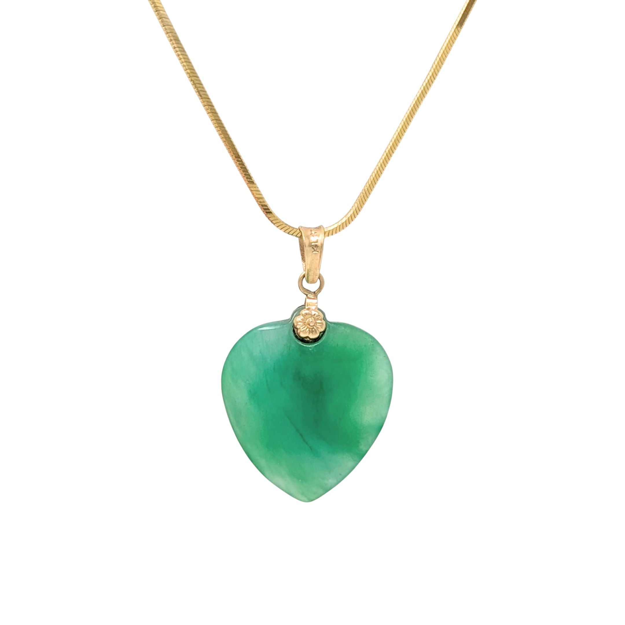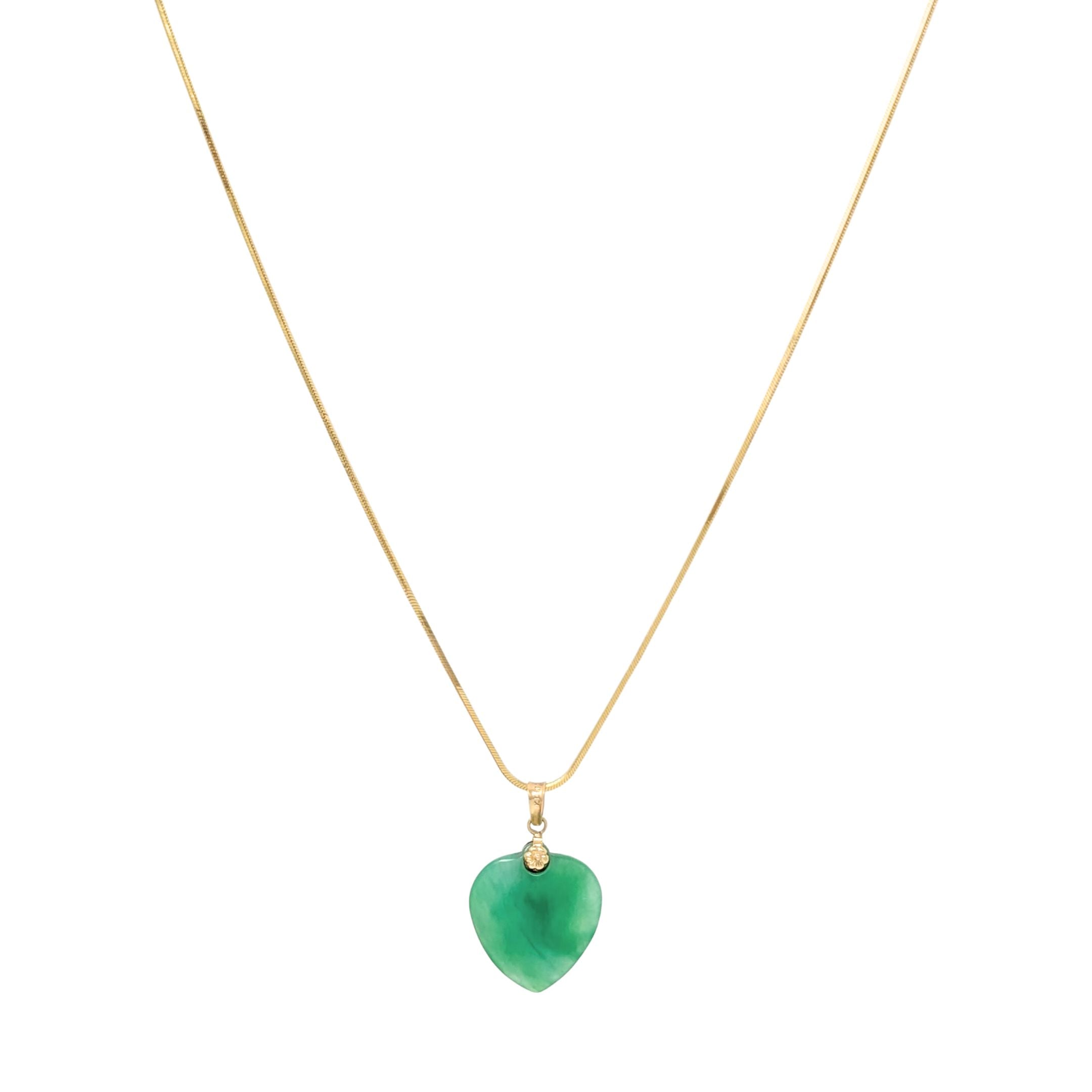 14K Gold Jade Heart 20" Snake Chain Necklace