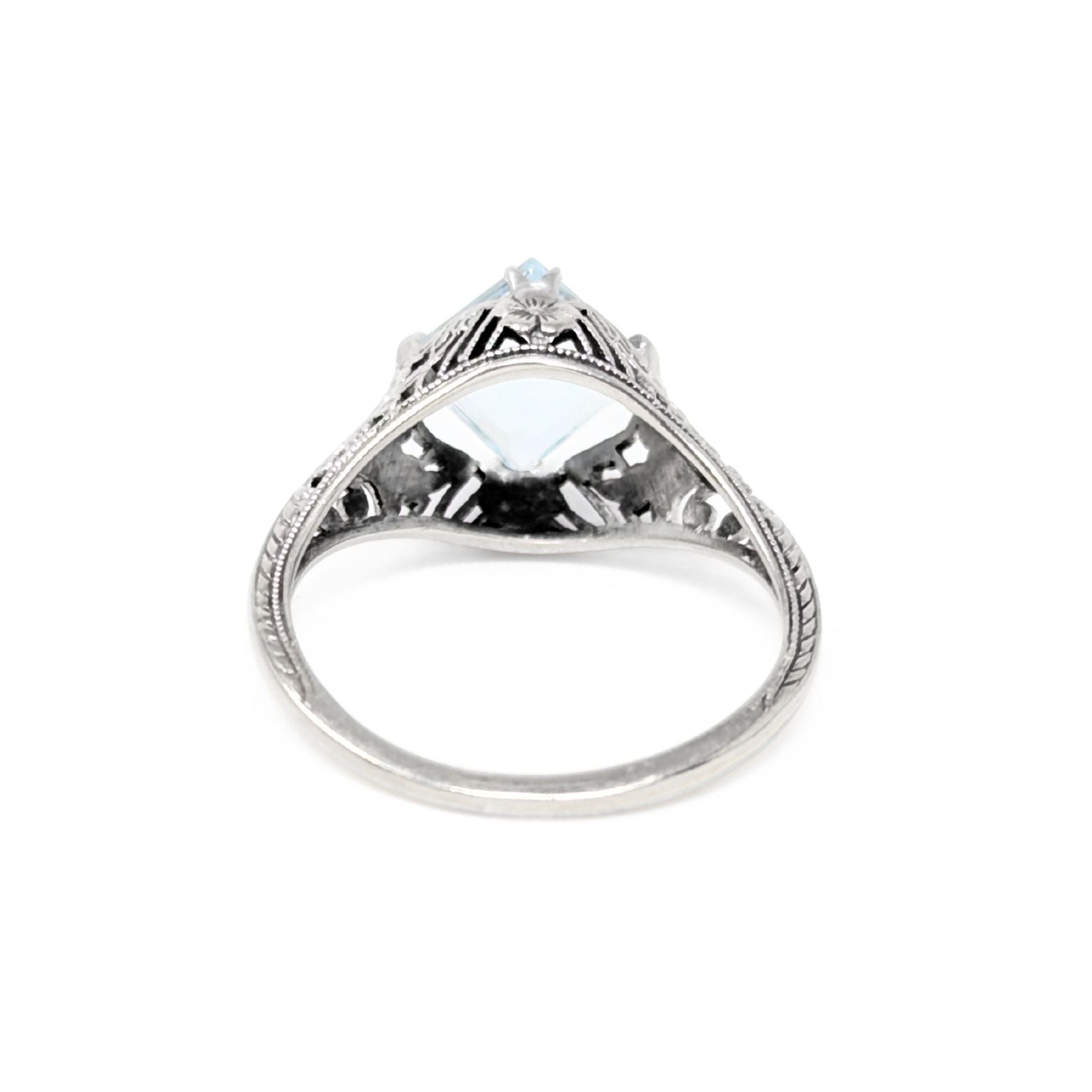 14K White Gold Aquamarine Floral Filigree Ring - Size 5