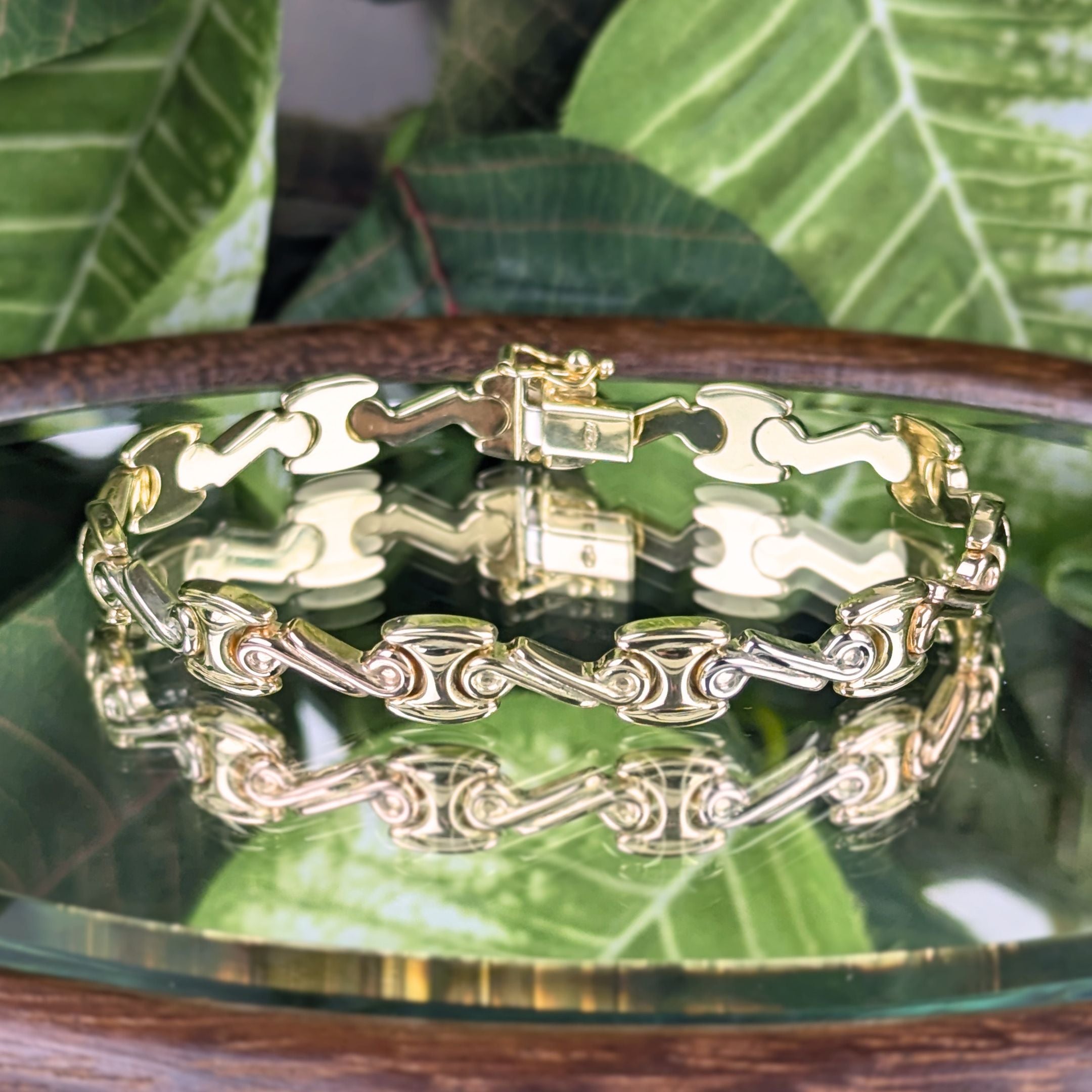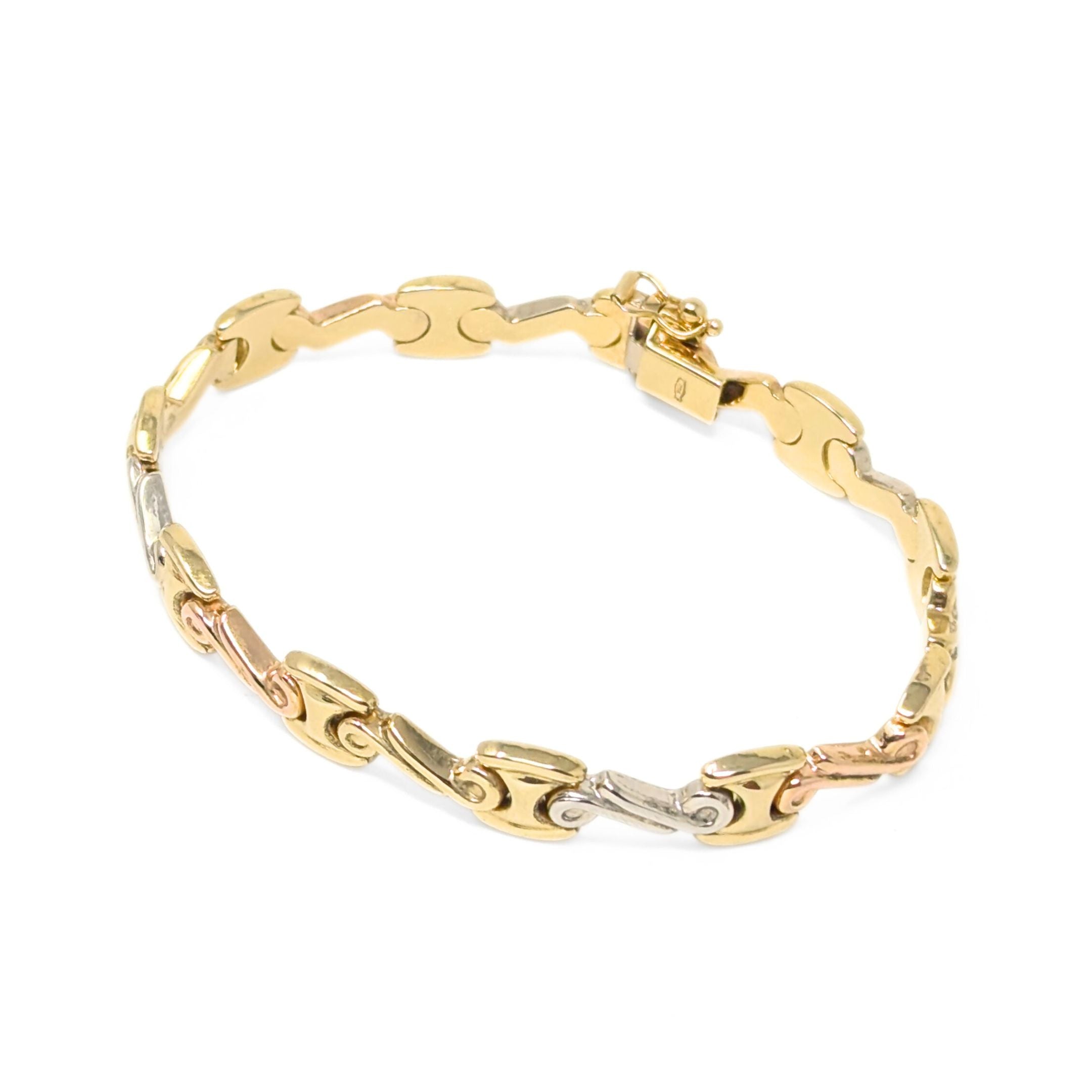 Damas Dubai 18K Tri-Color Gold 8.4mm 7” Fancy Link Bracelet