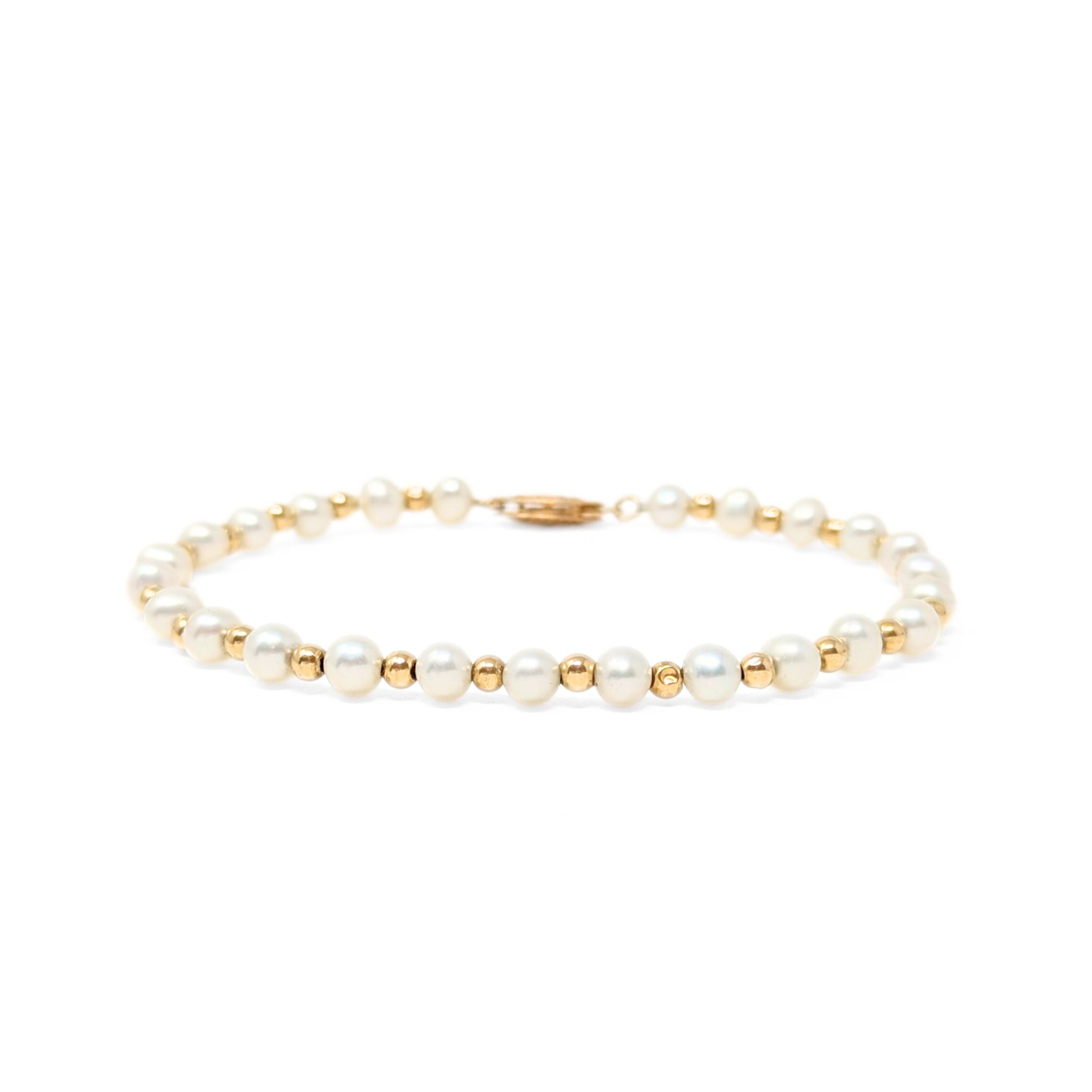 Vintage 14K Gold Bead & Pearl 7 1/4” Bracelet