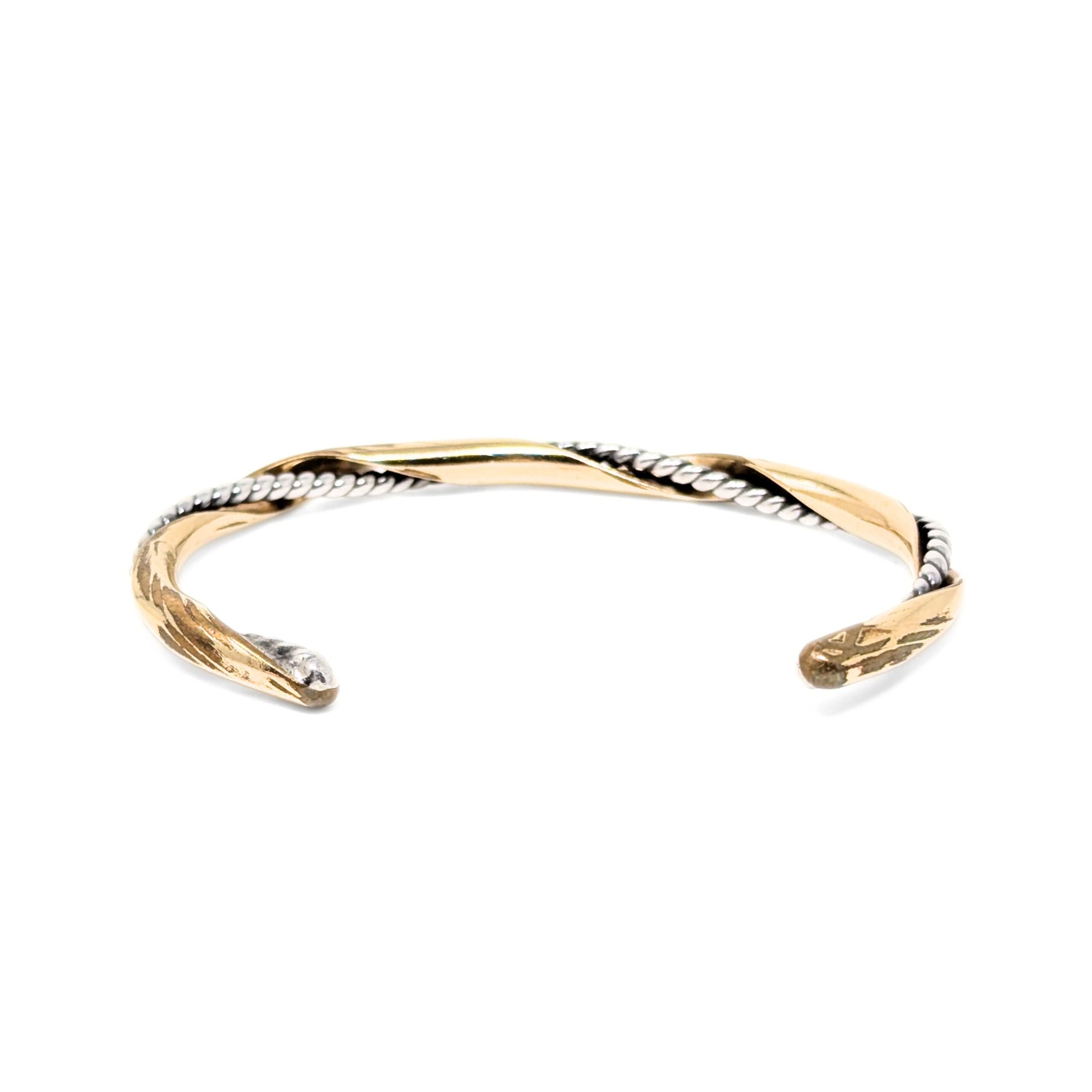 Vintage Handmade 9K Gold Bar & Sterling Rope Twisted Cuff Bracelet