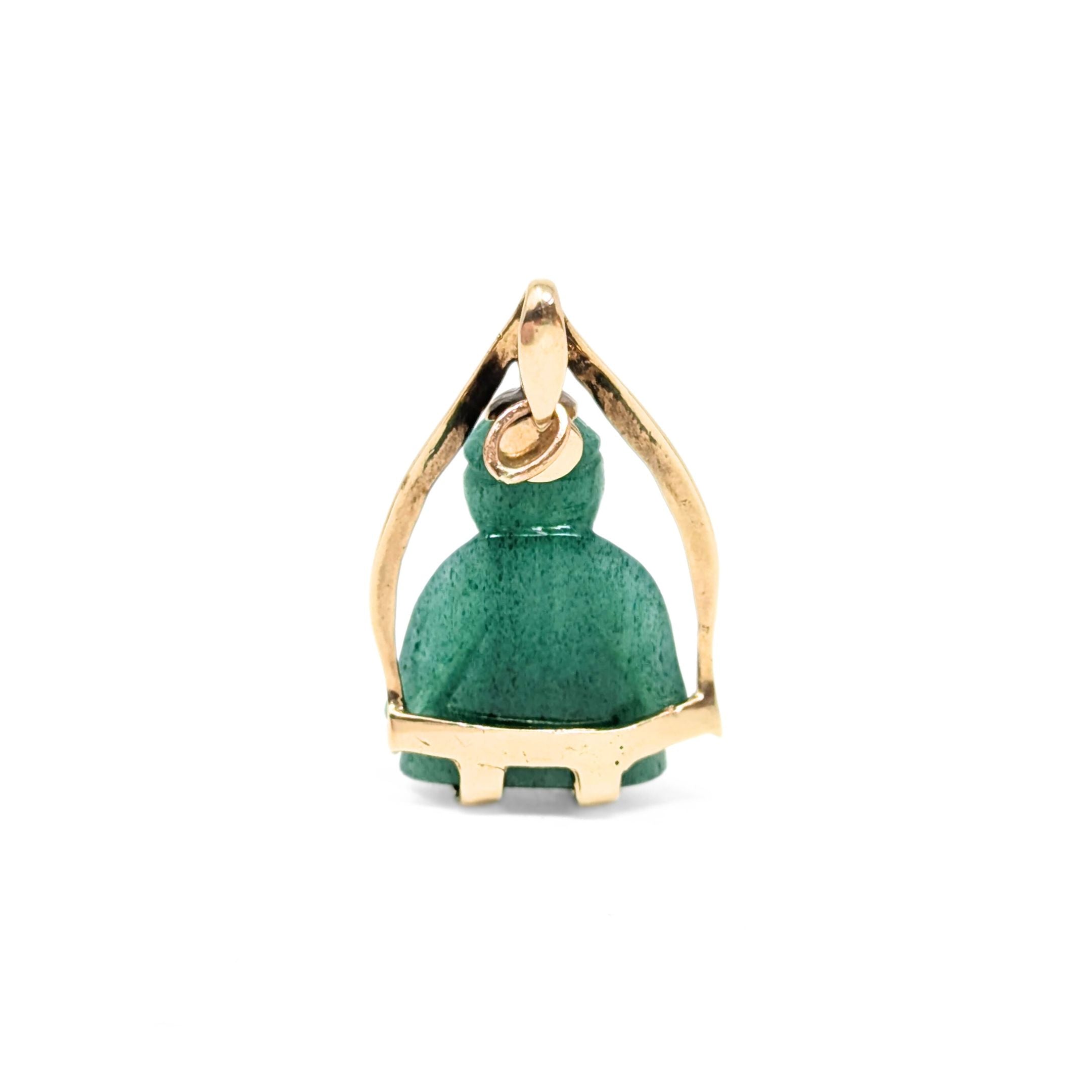 Details: Beautiful vintage charm featuring a hand-carved green jade Buddha in an elegant 10K gold setting.