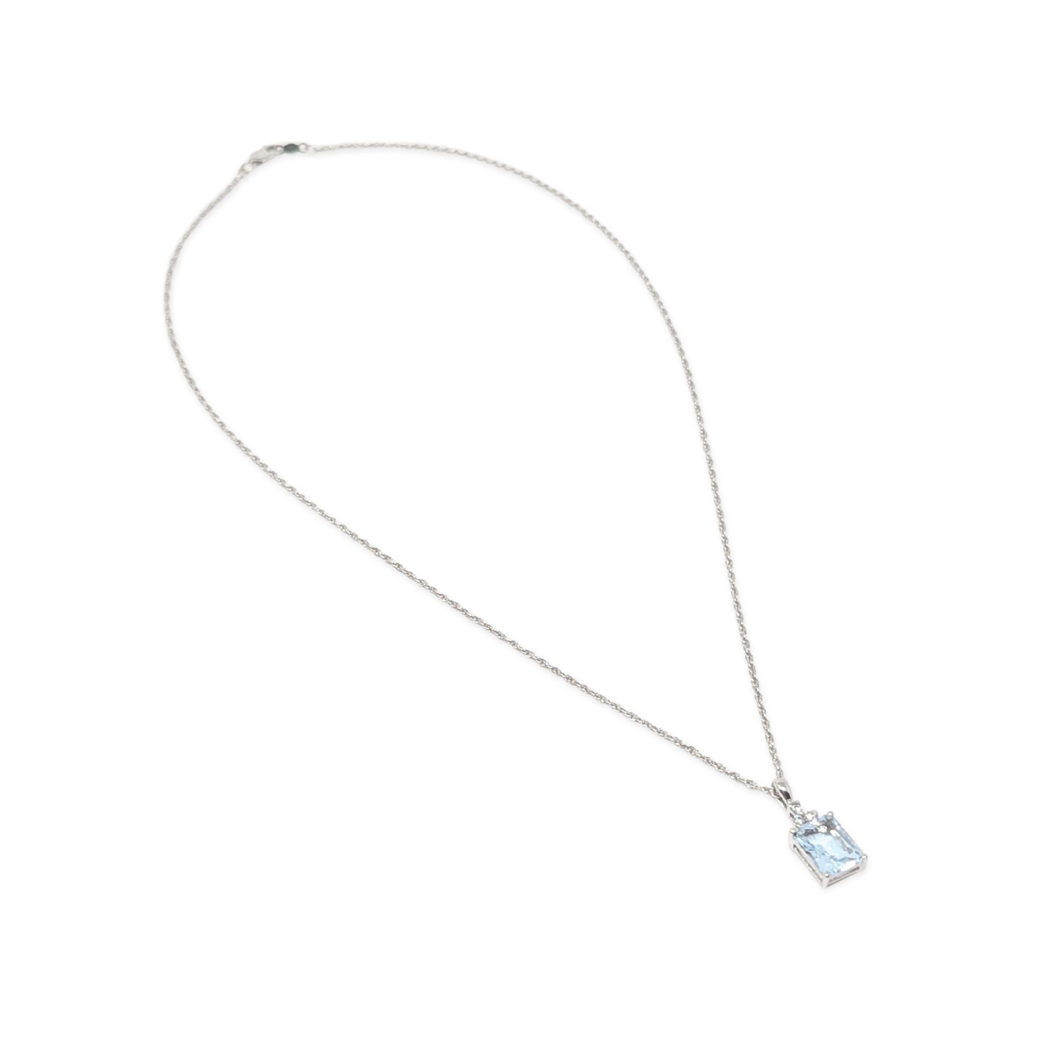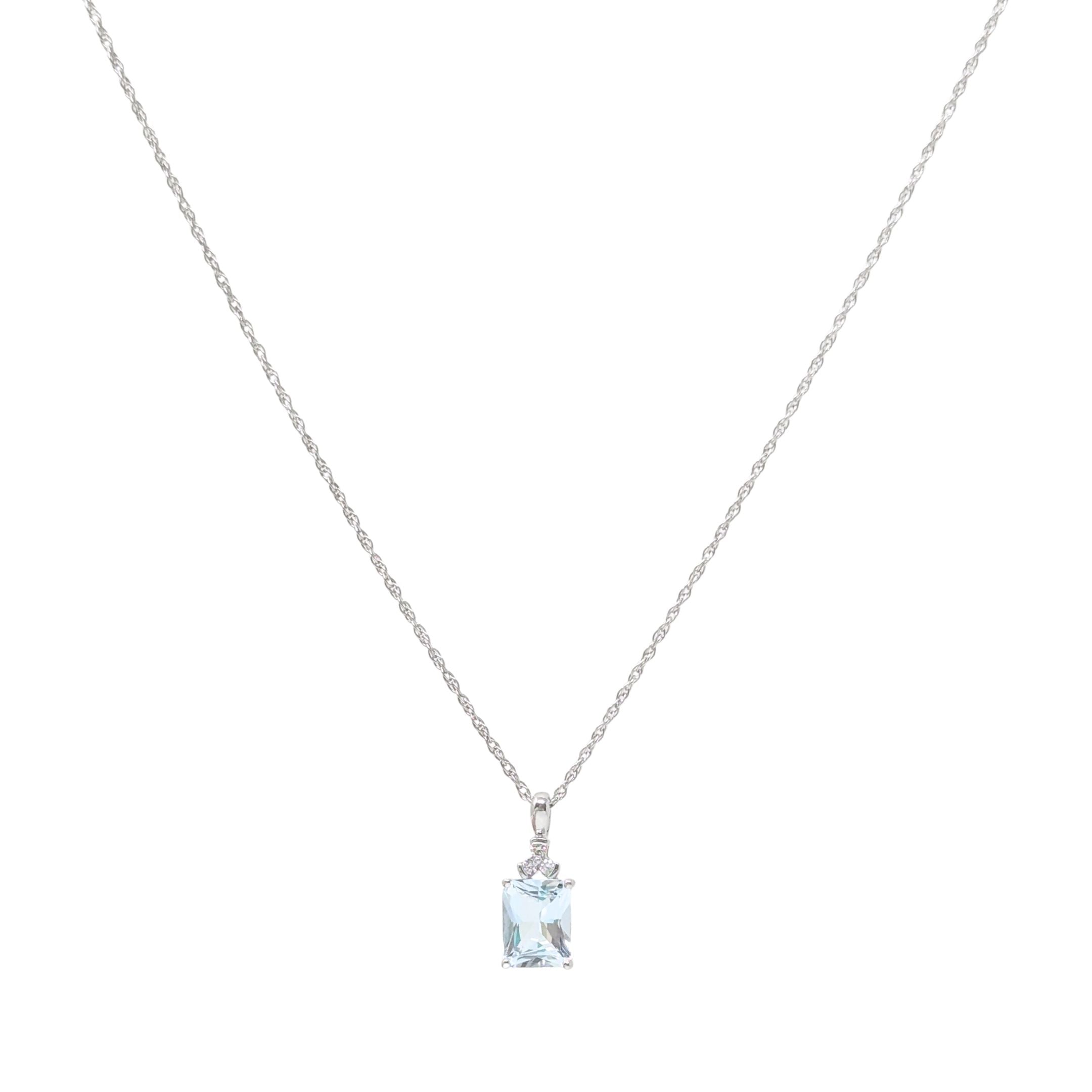 Details: A staple for any jewelry collection, this elegant emerald cut aquamarine and diamond pendant is secured in a white gold setting on a fine white gold chain.