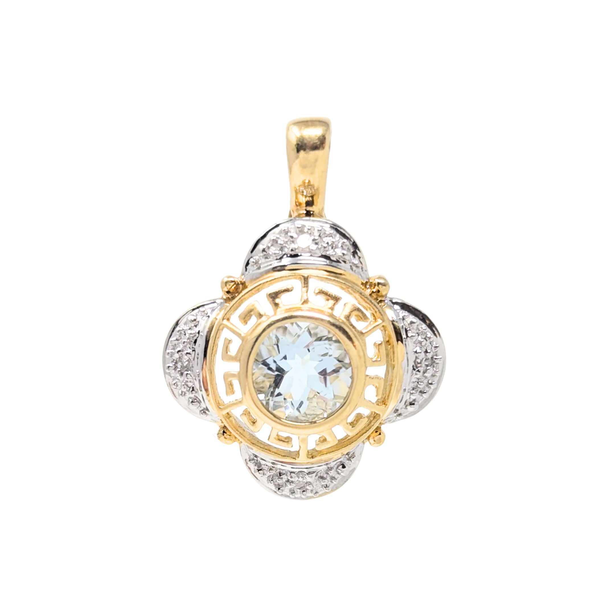 14K Two-Tone Gold Aquamarine & Diamond Greek Key Pendant