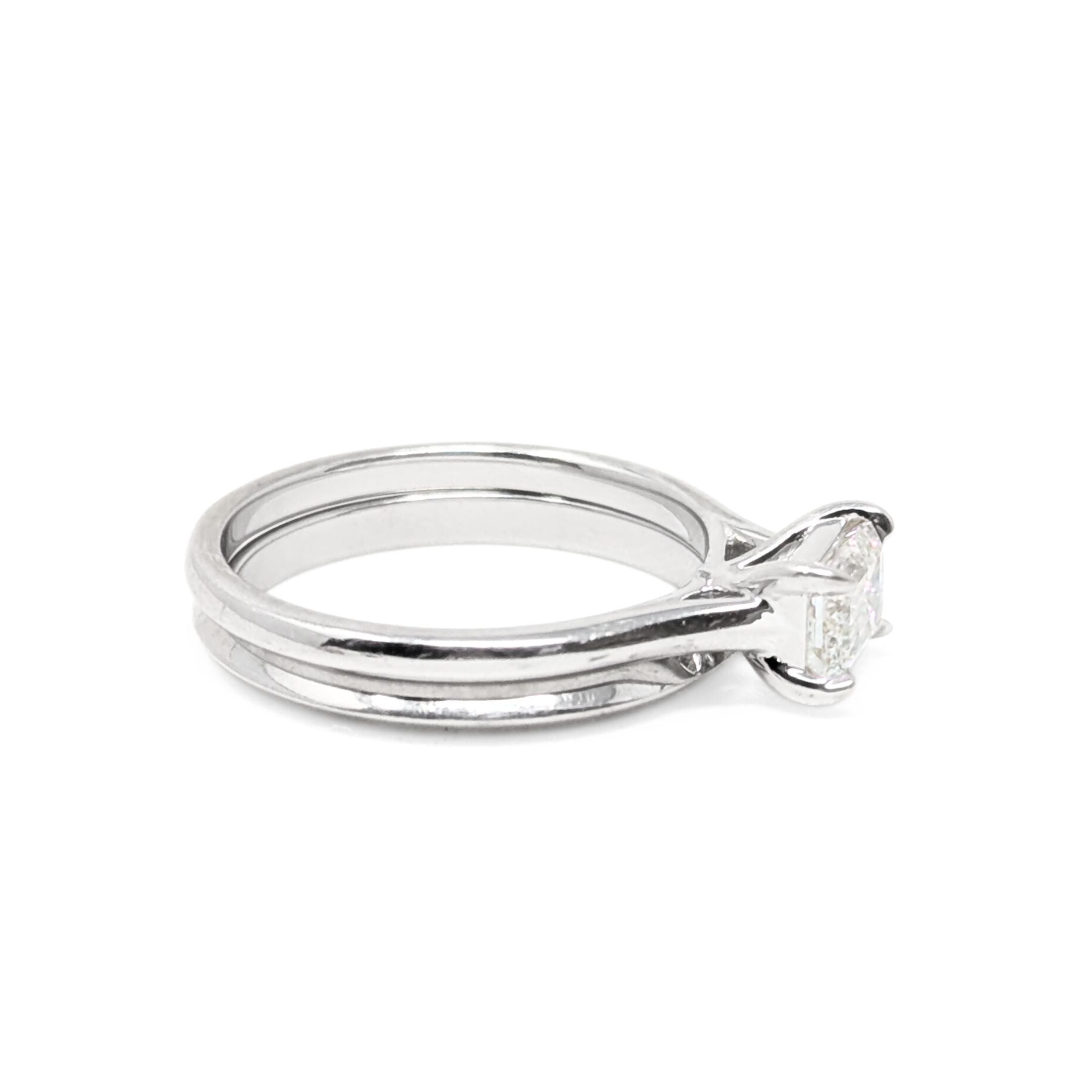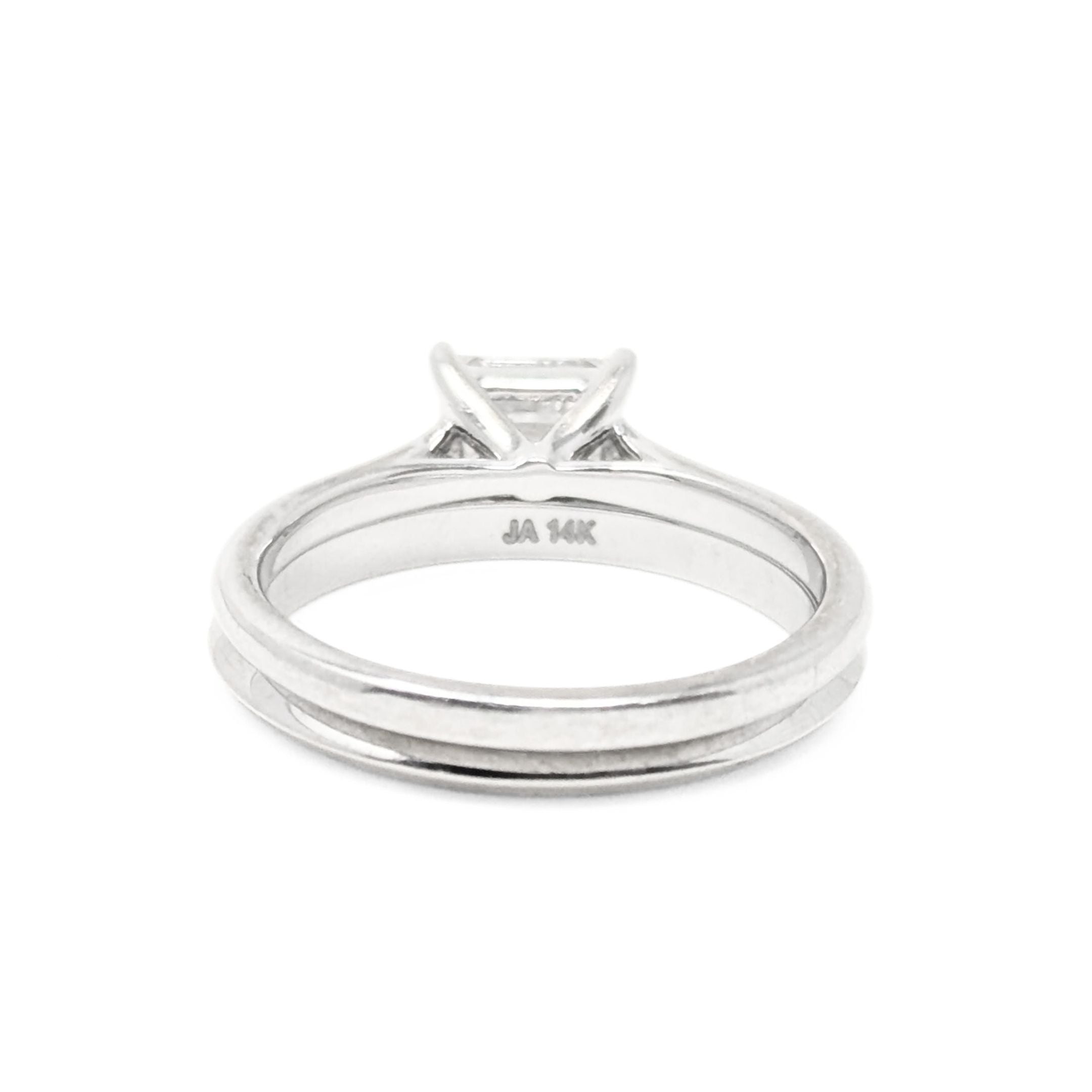 14K White Gold 0.6ct Emerald Cut Diamond Solitaire Engagement Set - Size 6