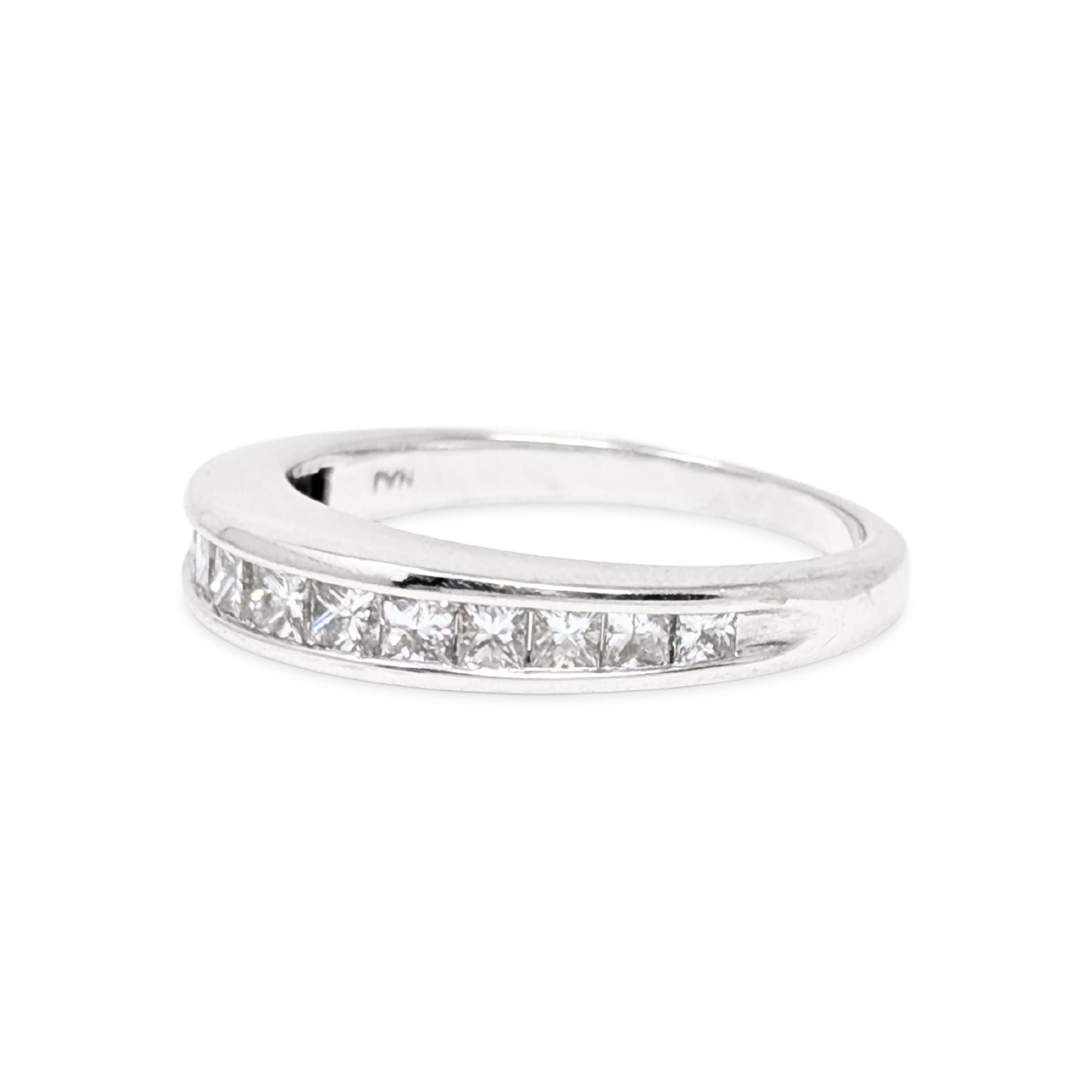 Details: A gorgeous 14K white gold anniversary band with 13 princess cut channel set diamonds.
