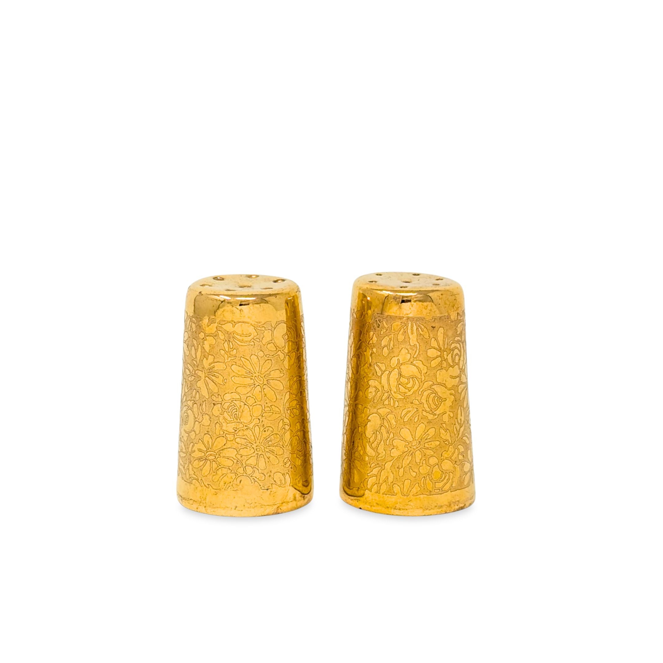 Condition: Excellent pre-owned condition. No chips, cracks, or crazing. Minor spots of gold loss and throughout consistent with age and use. Salt and pepper shakers are missing their stoppers. Please see photos.