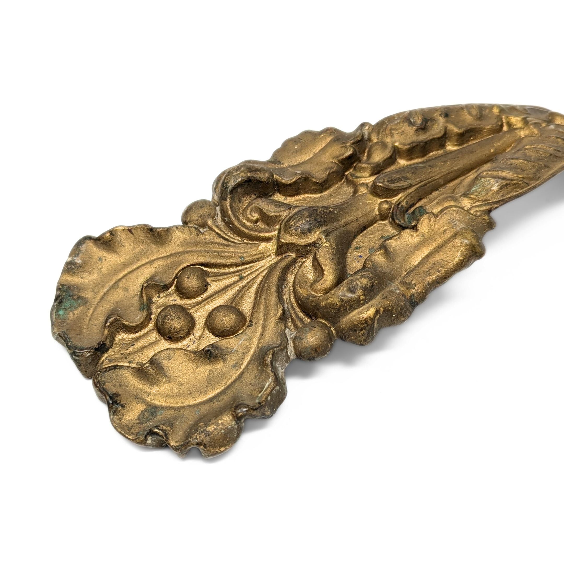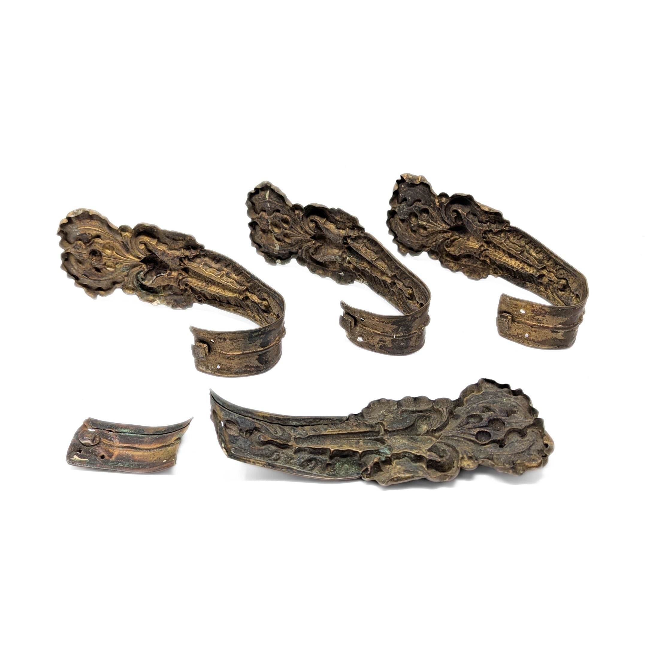 Details: An authentic set of four pressed bronze curtain tiebacks with Rococo foliate motifs.