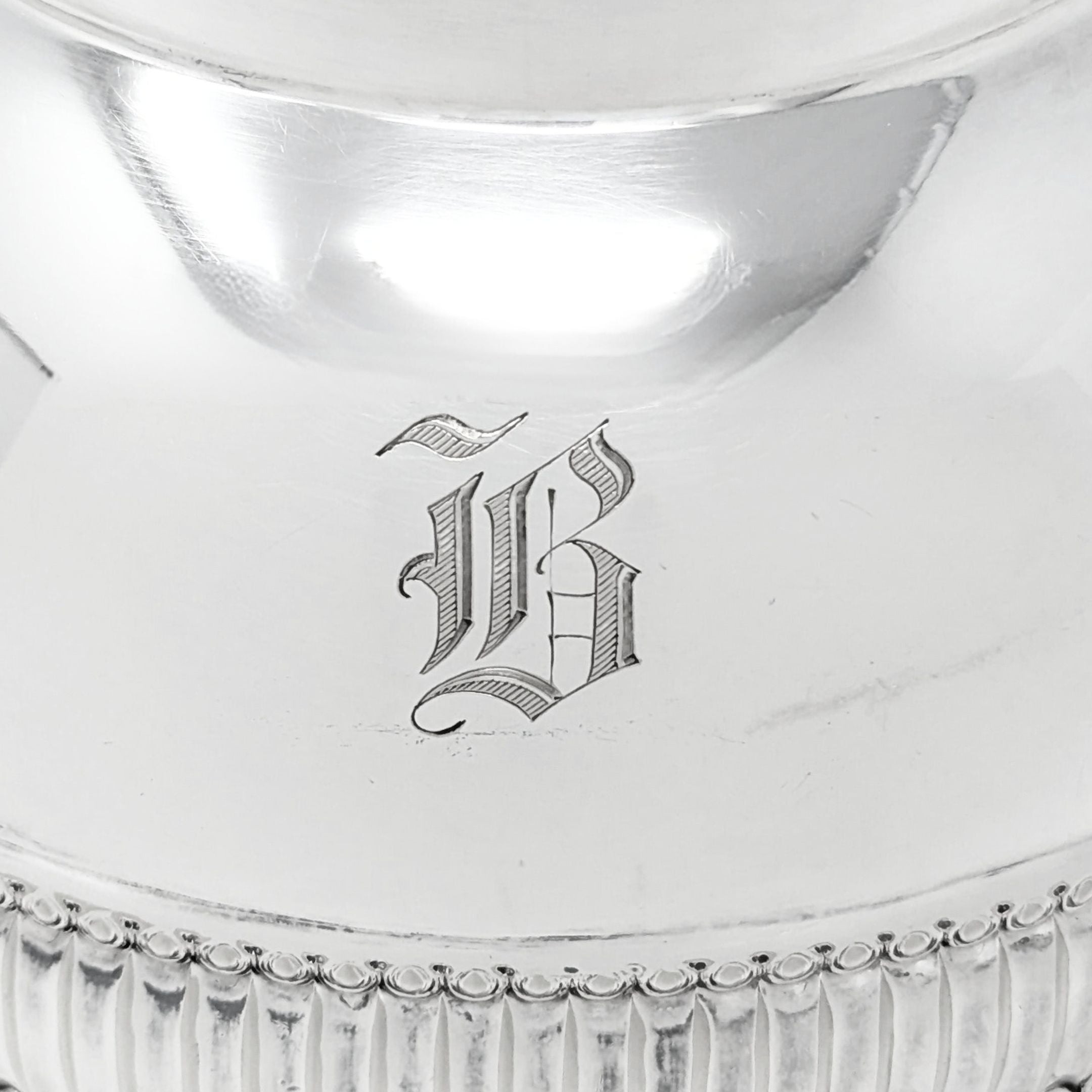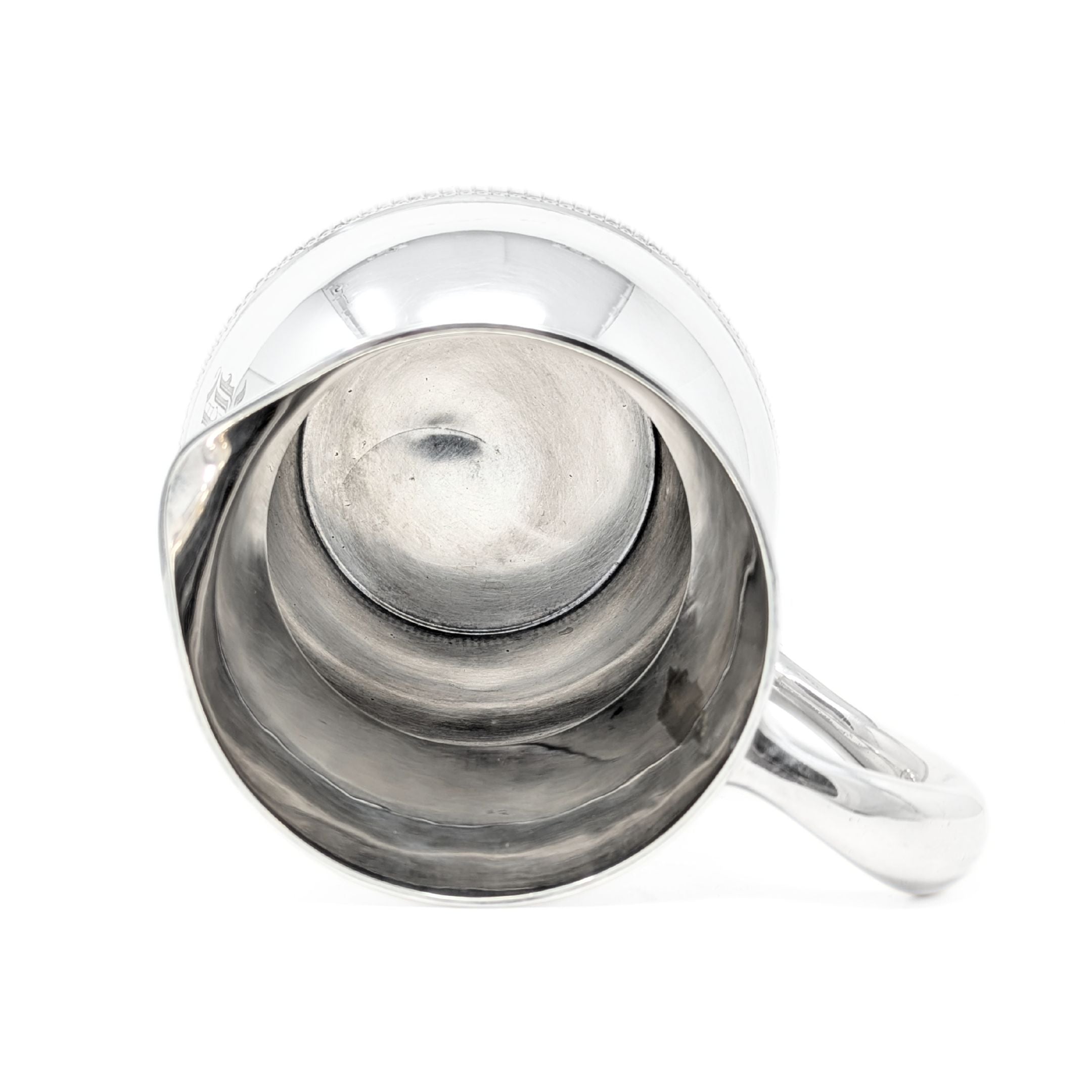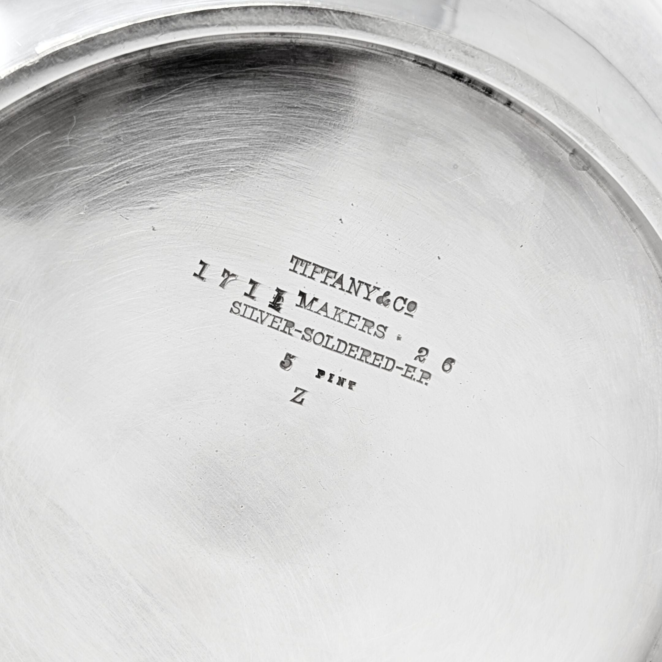 Condition: Very good. Some minor hairline scratches and imperfections throughout consistent with age and use. Bottom has a shallow, flat ~2” W dent. No apparent silver loss, pitting, or other damage. Please see photos.
