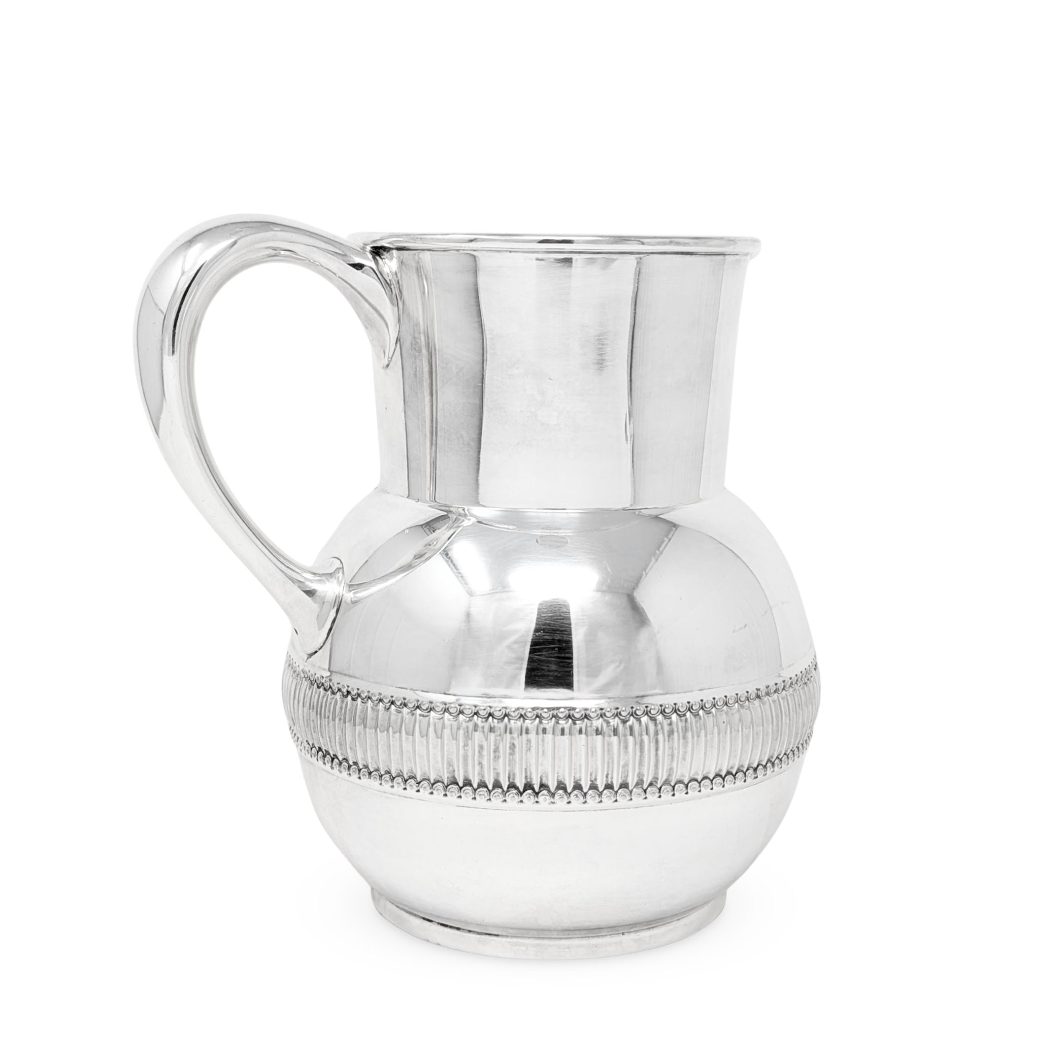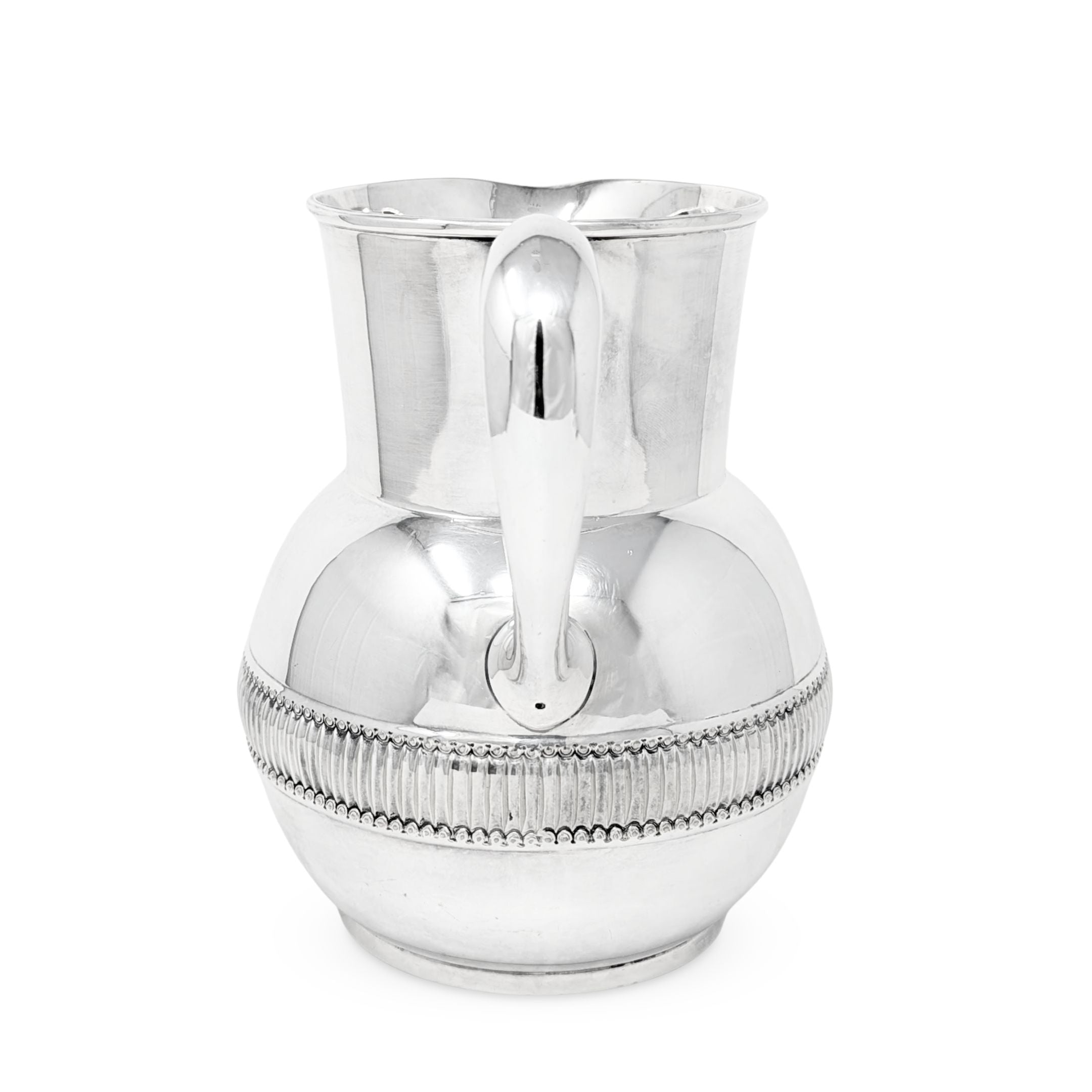 Details: A simple yet elegant table water pitcher perfect for entertaining. Front bowl is monogramed with a Blackletter “B” beneath the spout. Bottom is stamped “TIFFANY & CO. MAKERS / SILVER-SOLDERED-EP / 5 PINT” with some additional identifying numbers and letters on either side.