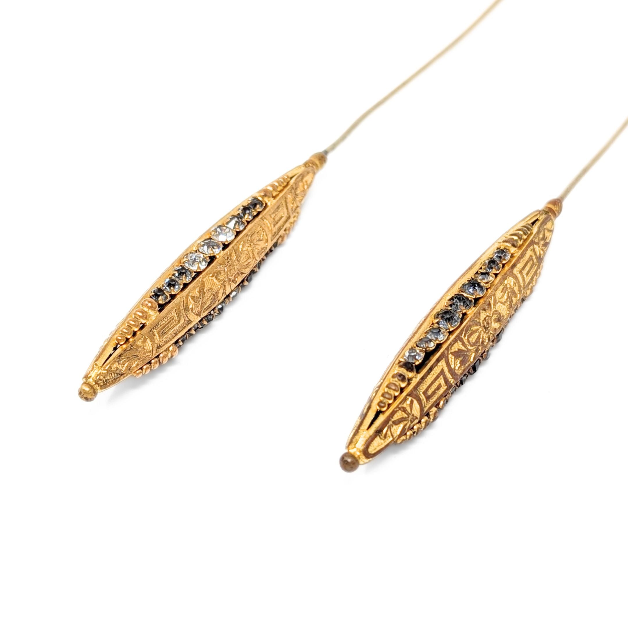 Victorian Etruscan Revival Gold Tone & Rhinestone Hat Pins (Pair)
