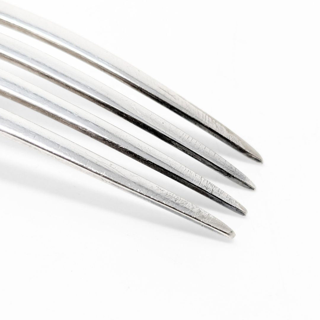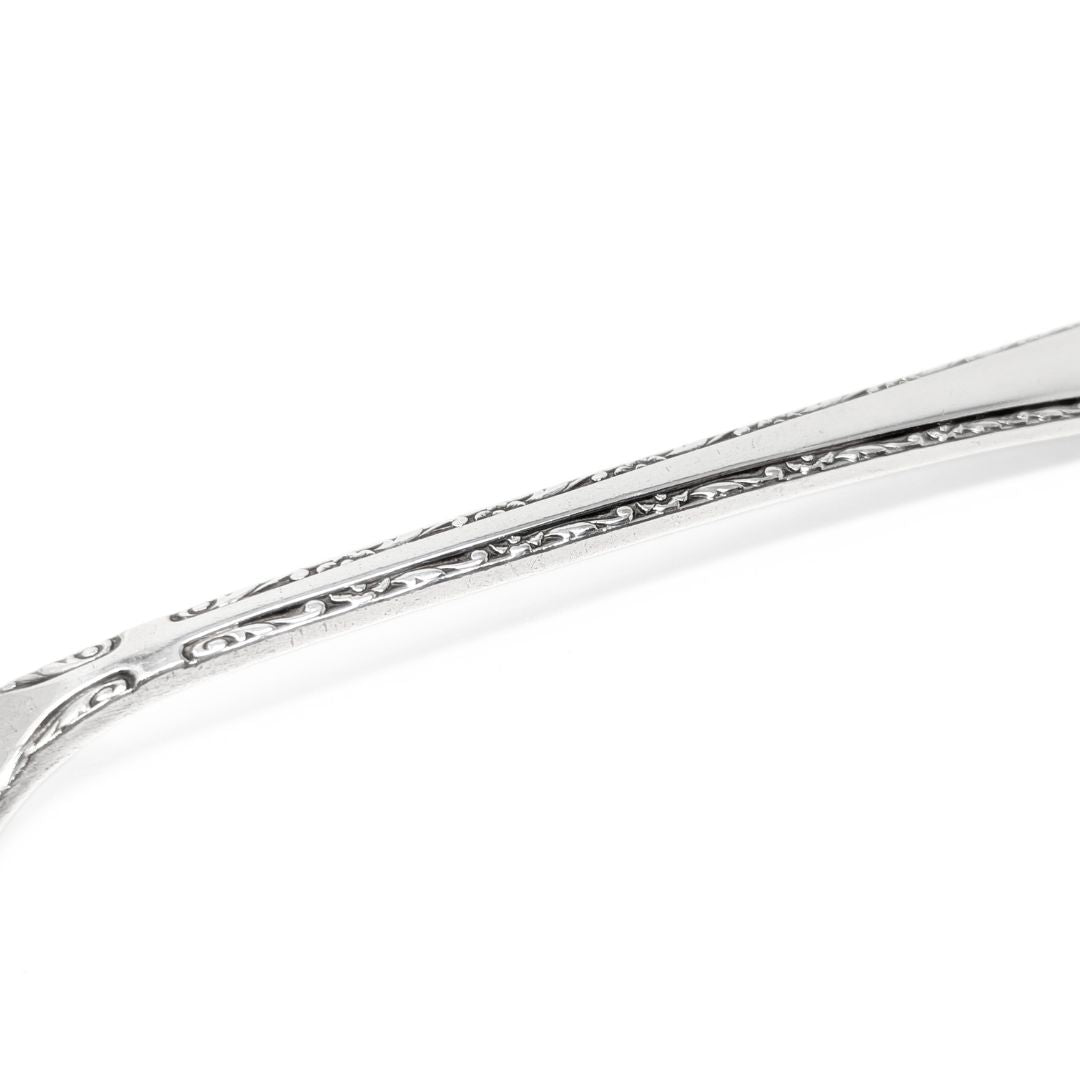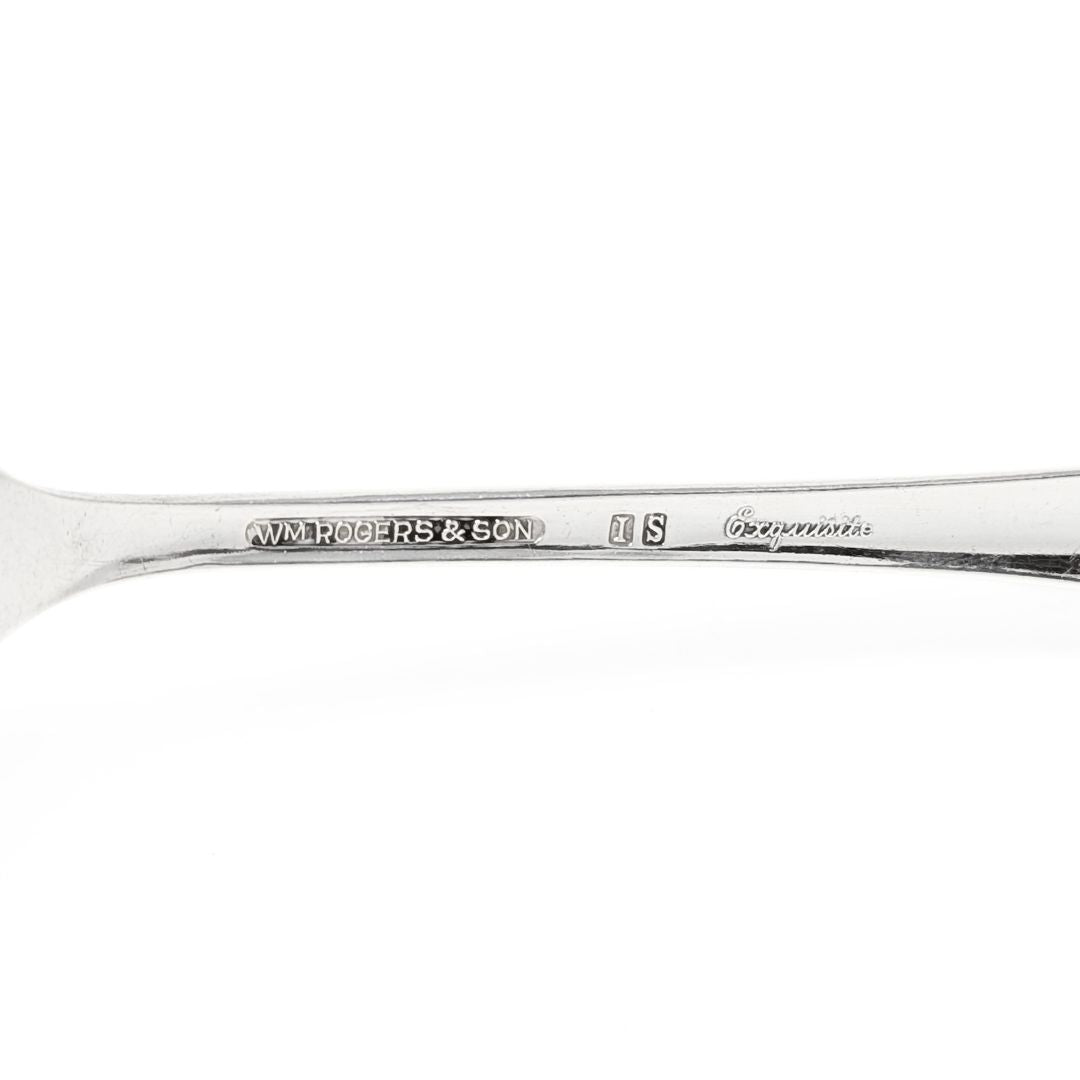 Details: William Rogers & Son (as part of the Wm. Rogers Mfg. Co.) became part of the International Silver Company after 1898, when International Silver was formed as a conglomerate of 14 New England silver producers. Each piece in this set is marked “WM ROGERS & SON” as well is stamped with the letters “I S” to indicate International Silver. The name of the pattern, “Exquisite” is also embossed in a decorative script next to the manufacturer’s marks.