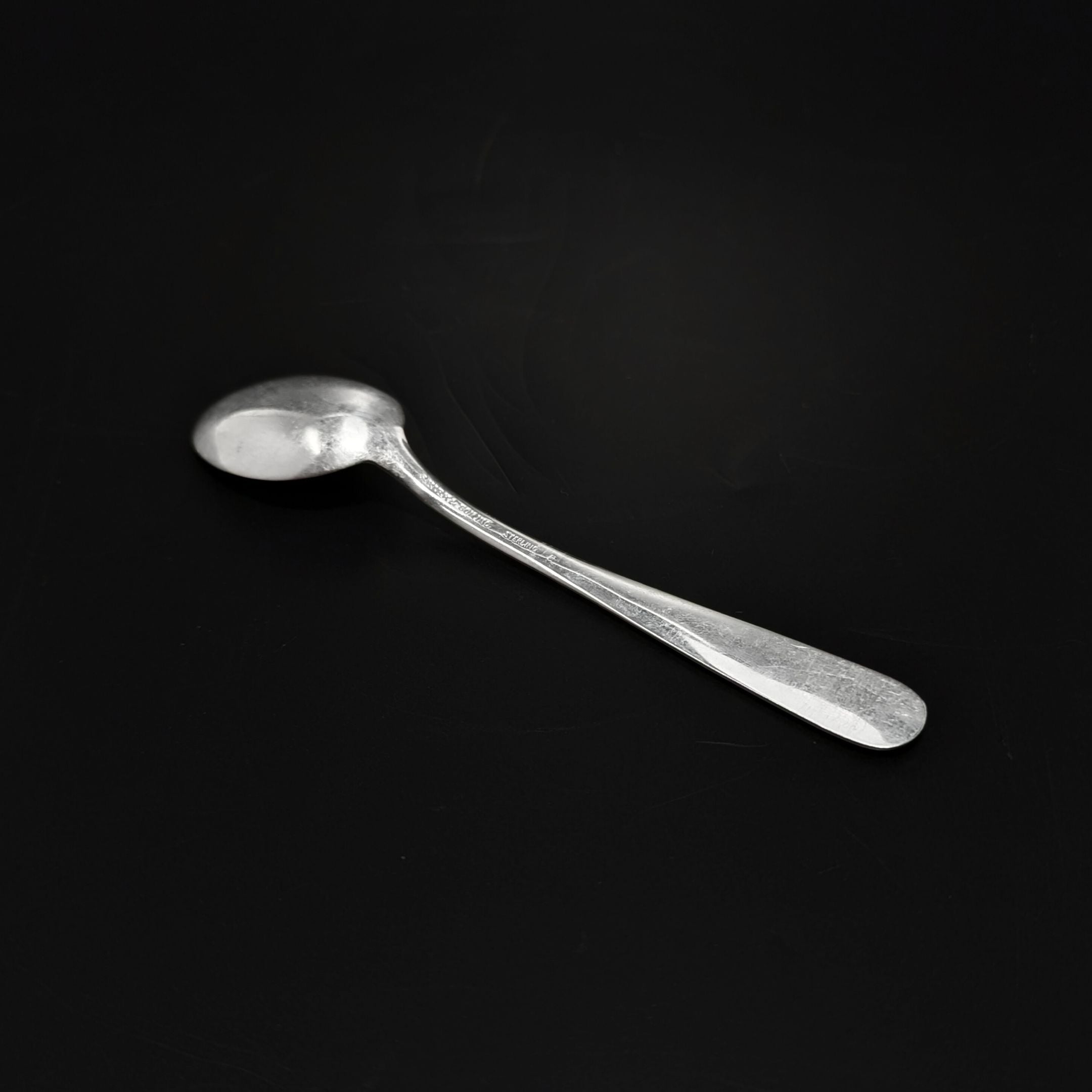 Spoon is stamped with the maker’s mark, "S. Kirk & Son Inc.” and “STERLING” on the back.