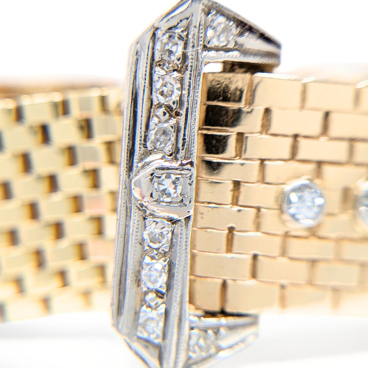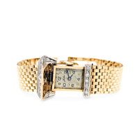 Vintage 14K Gold & Diamond Buckle Weave Hidden Watch Bracelet