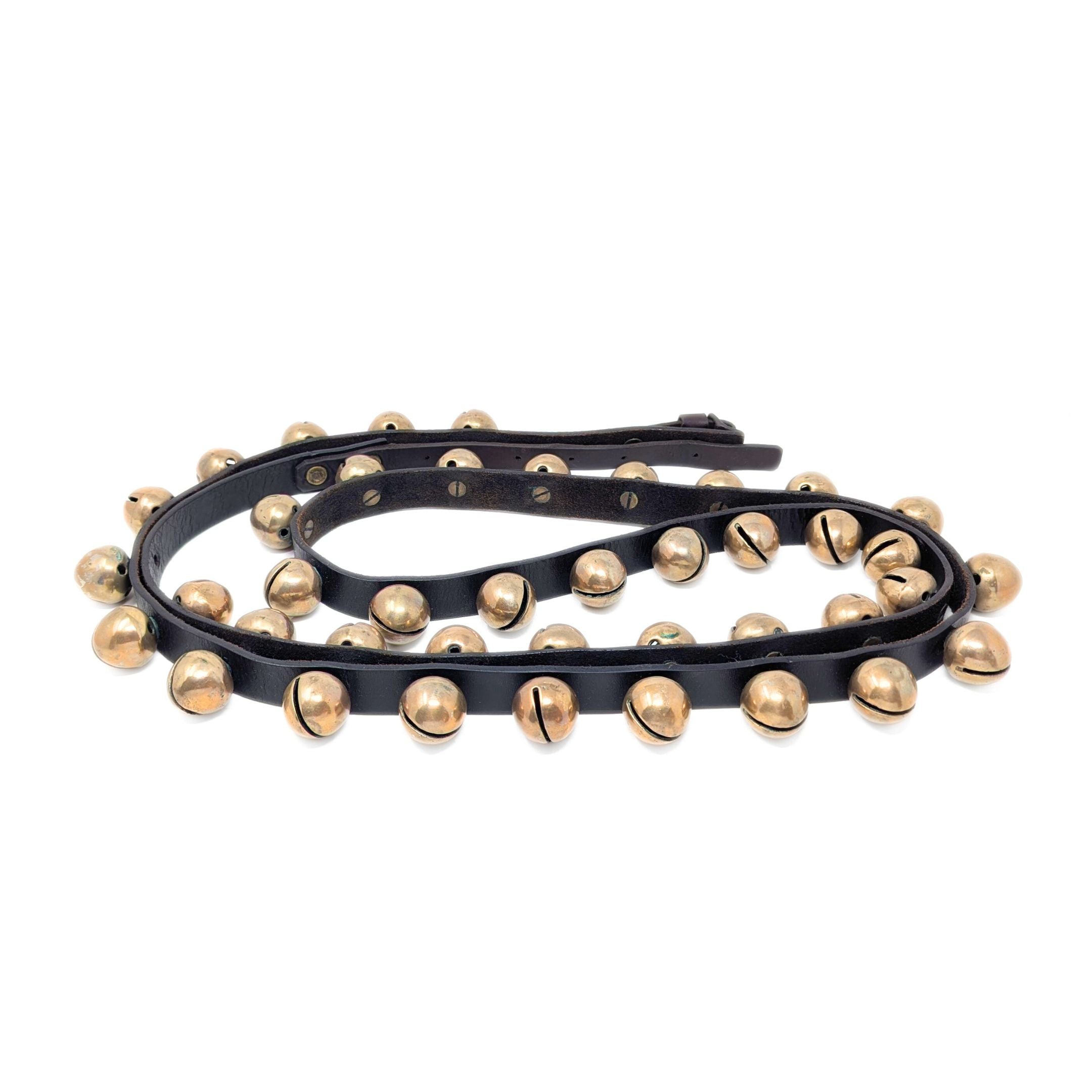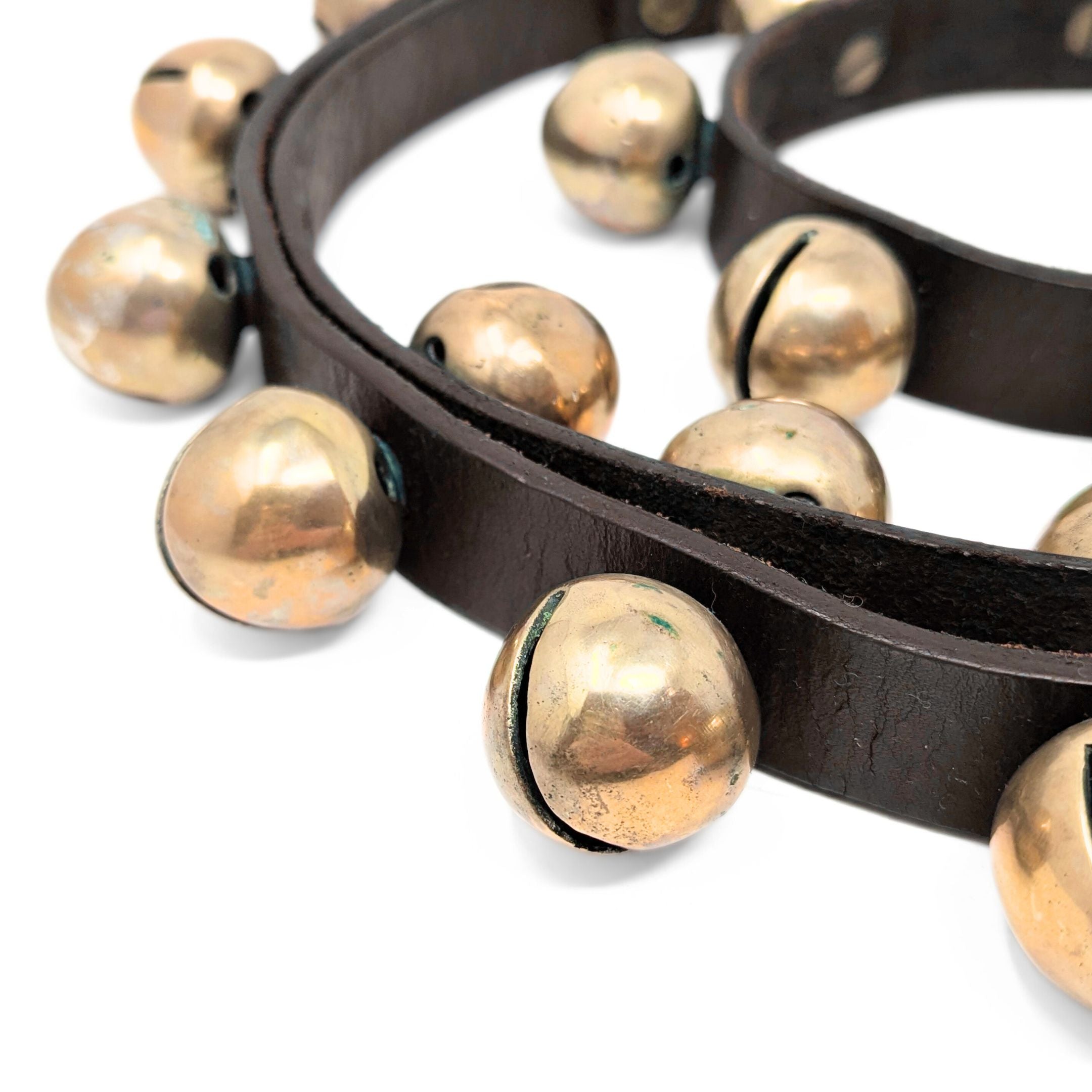 Condition:  Very good vintage condition. Leather has been conditioned. Bells have been gently cleaned but still have varied patina.  Metal buckle still functional.  One bell is missing. Please see photos.