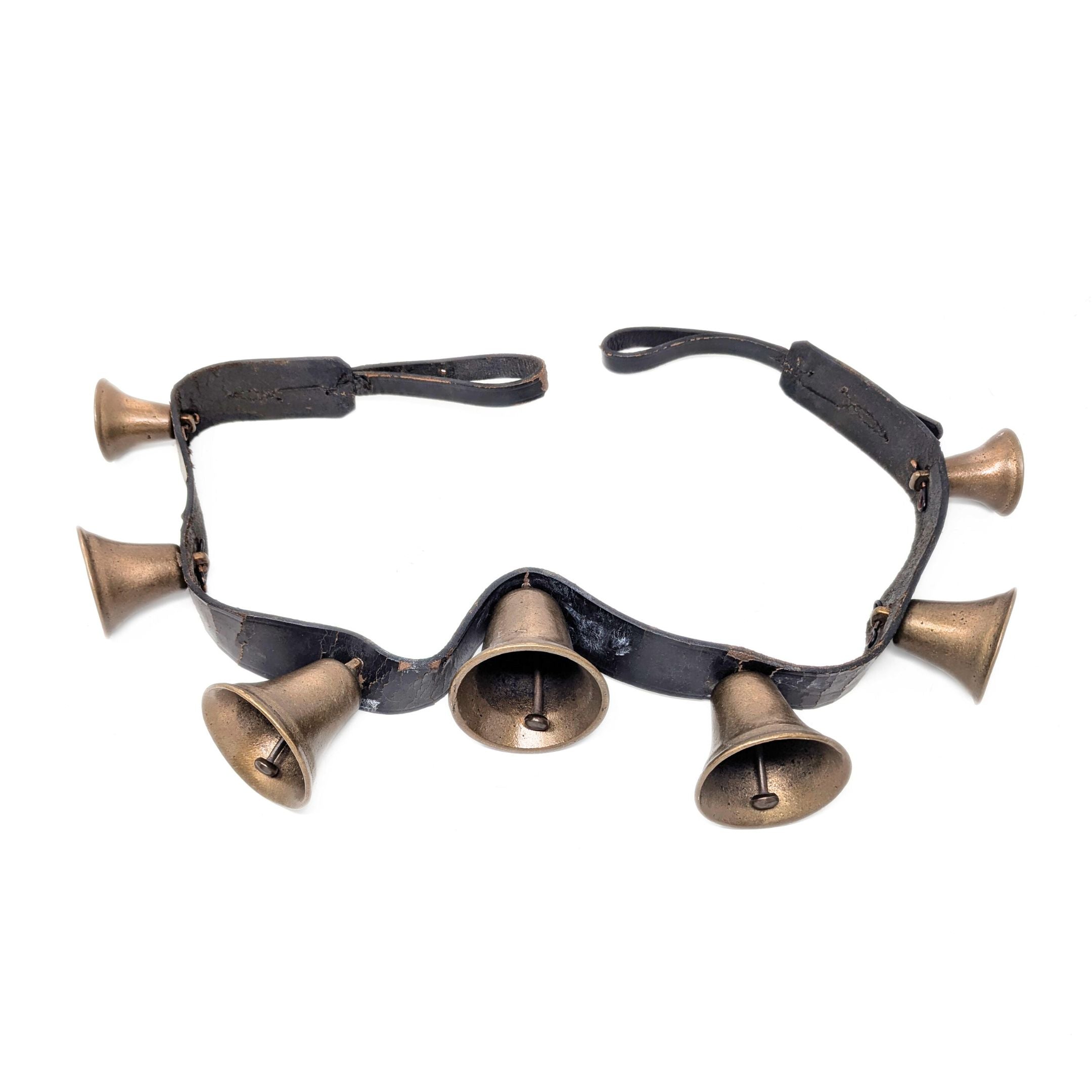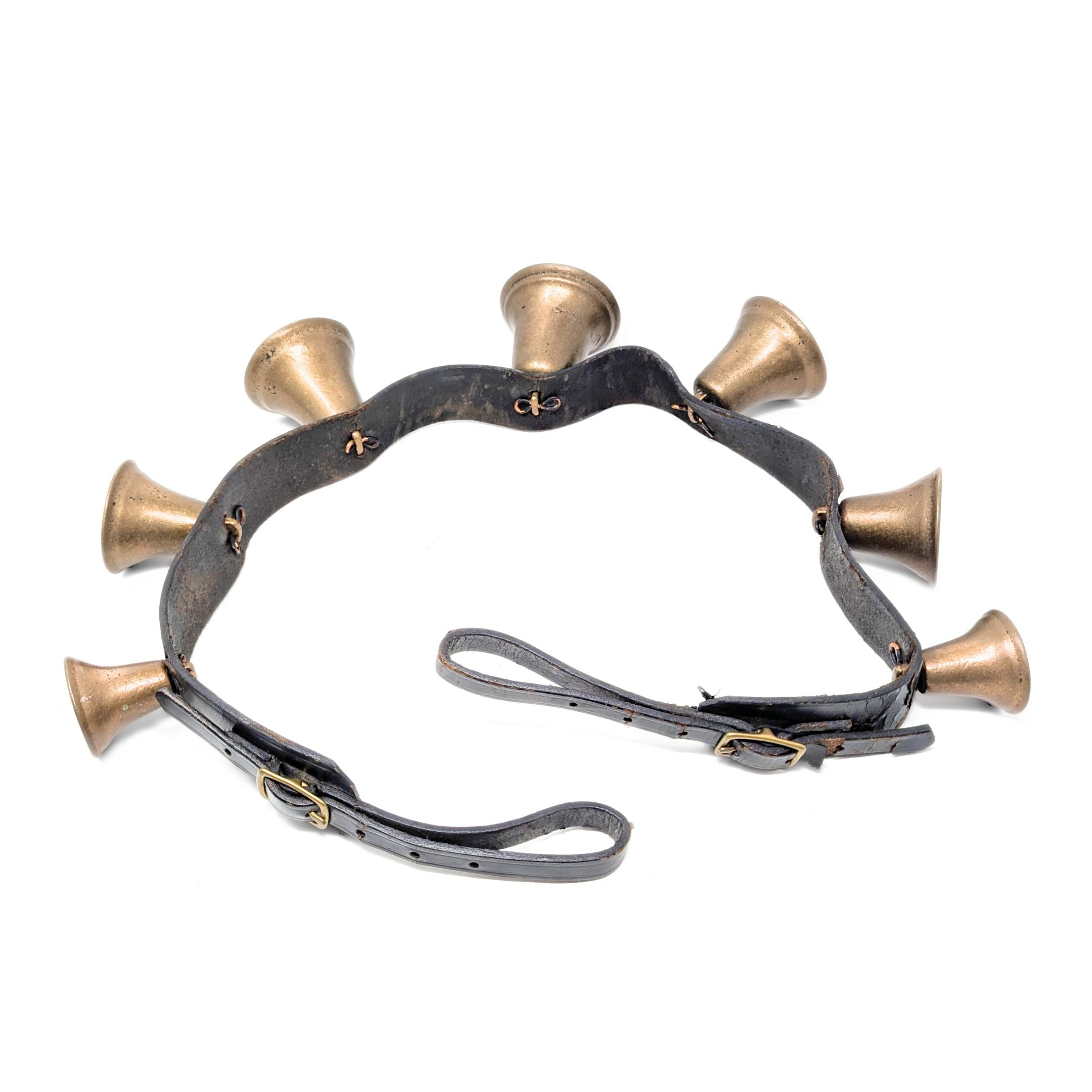 Vintage Bronze Sleigh Bell 45" Belly Strap With 7 Open Bells